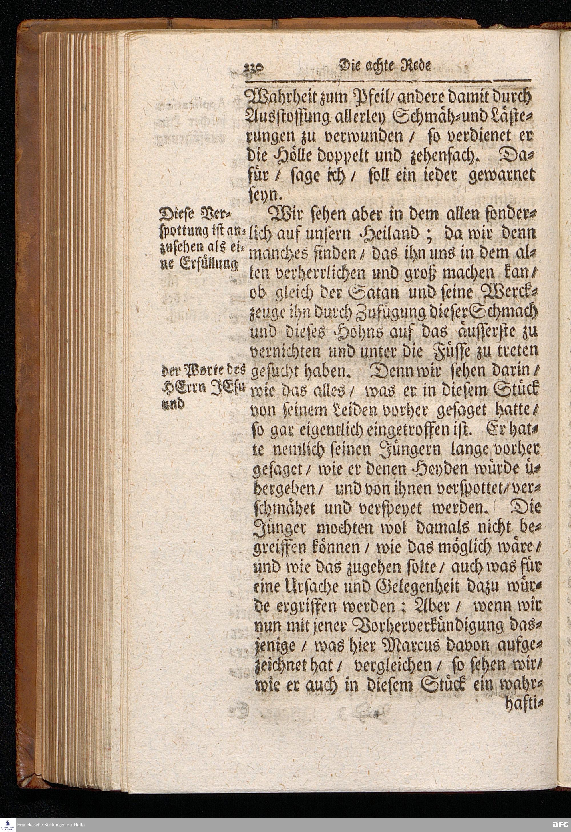 August Hermann Franckens S.Theol.Prof.Ord.und Past. Oeffentliche Reden über die Paßions=Historie / Wie dieselbe vom Evangelisten Marco im 14. und 15. Cap. beschrieben ist / gehalten Von Esto mihi bis Ostern 1712. In dem Wäysenhause zu Glaucha an Halle. HALLE, Gedruckt und verlegt im Wäysenhause, MDCCXV.