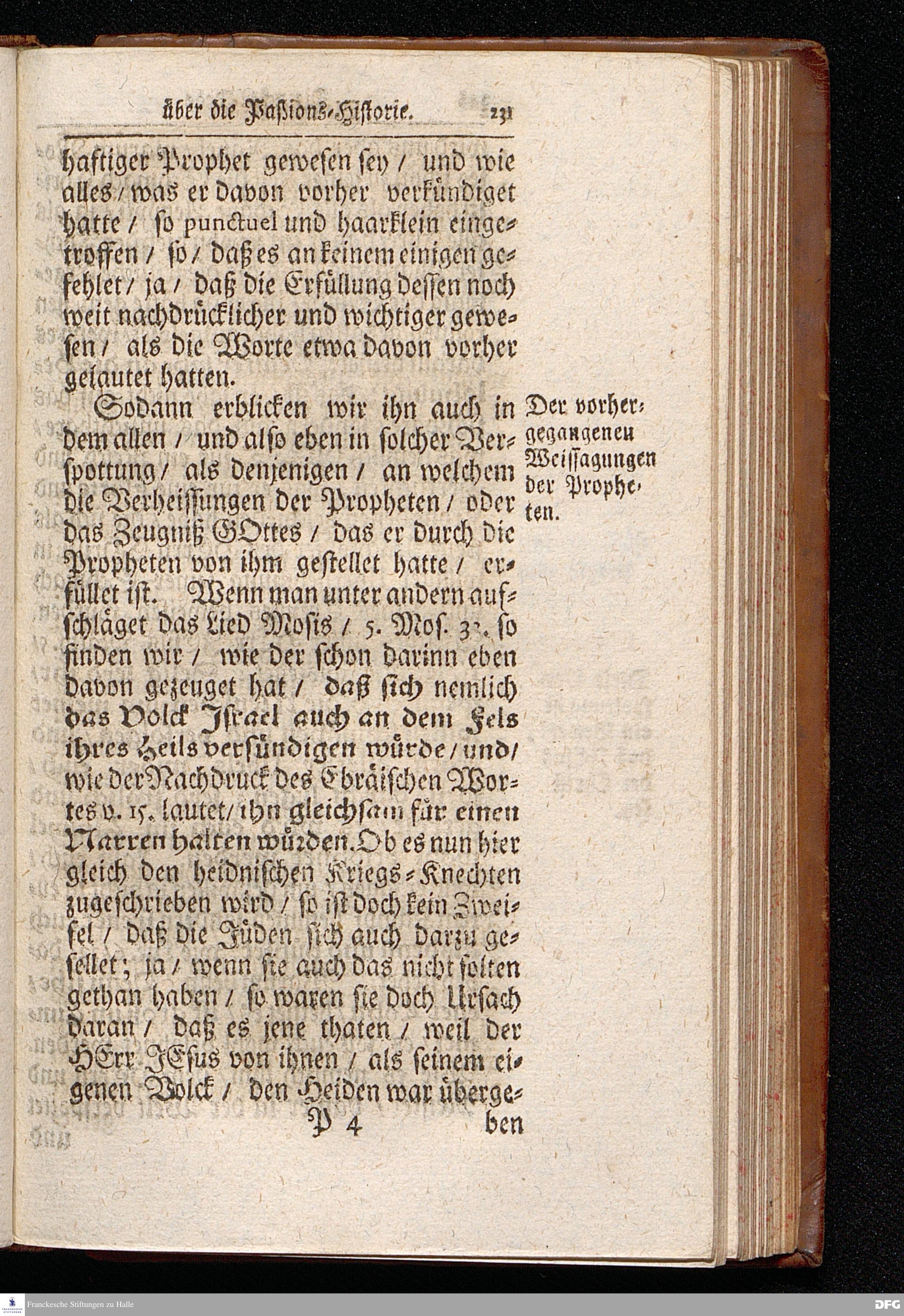 August Hermann Franckens S.Theol.Prof.Ord.und Past. Oeffentliche Reden über die Paßions=Historie / Wie dieselbe vom Evangelisten Marco im 14. und 15. Cap. beschrieben ist / gehalten Von Esto mihi bis Ostern 1712. In dem Wäysenhause zu Glaucha an Halle. HALLE, Gedruckt und verlegt im Wäysenhause, MDCCXV.