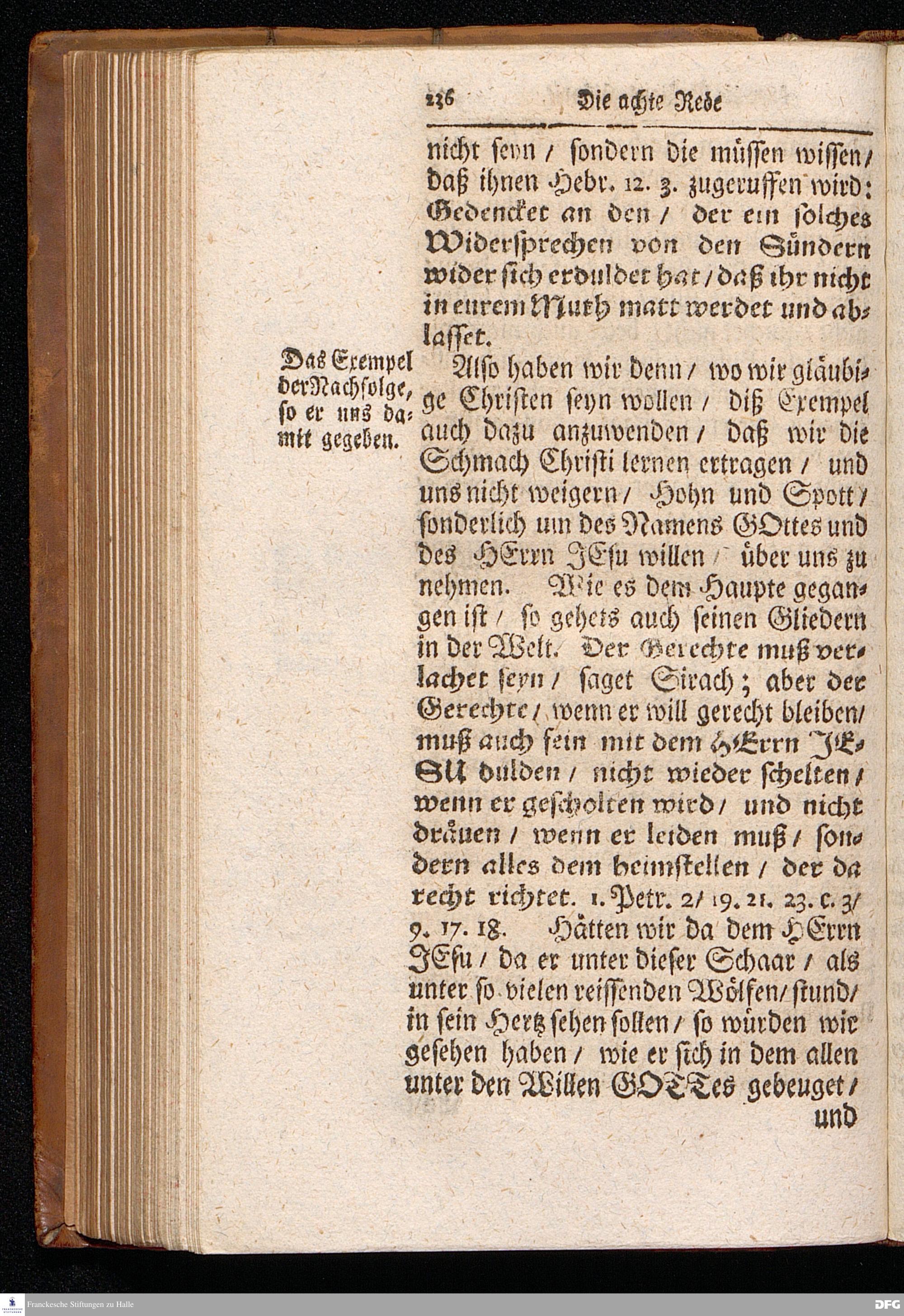 August Hermann Franckens S.Theol.Prof.Ord.und Past. Oeffentliche Reden über die Paßions=Historie / Wie dieselbe vom Evangelisten Marco im 14. und 15. Cap. beschrieben ist / gehalten Von Esto mihi bis Ostern 1712. In dem Wäysenhause zu Glaucha an Halle. HALLE, Gedruckt und verlegt im Wäysenhause, MDCCXV.