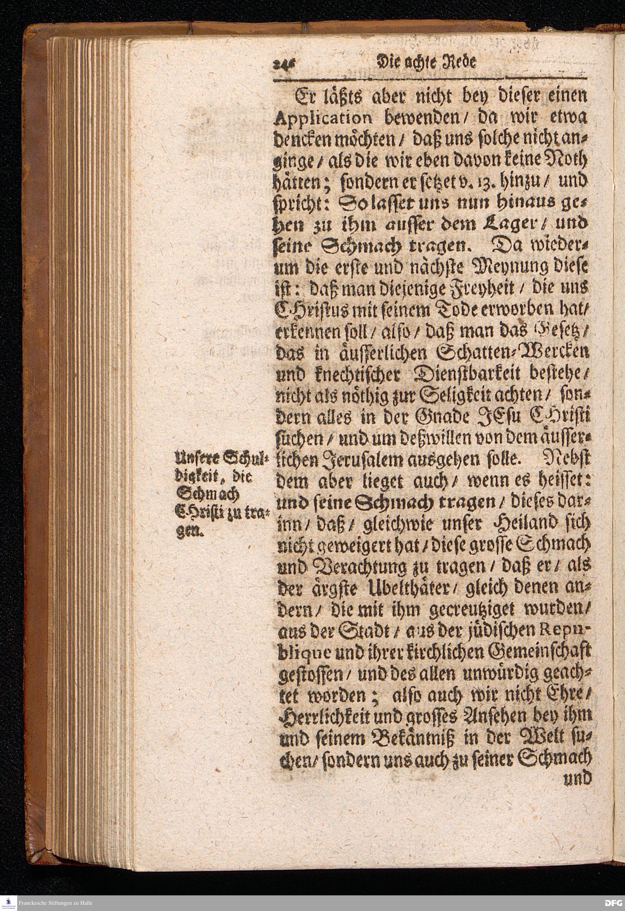 August Hermann Franckens S.Theol.Prof.Ord.und Past. Oeffentliche Reden über die Paßions=Historie / Wie dieselbe vom Evangelisten Marco im 14. und 15. Cap. beschrieben ist / gehalten Von Esto mihi bis Ostern 1712. In dem Wäysenhause zu Glaucha an Halle. HALLE, Gedruckt und verlegt im Wäysenhause, MDCCXV.
