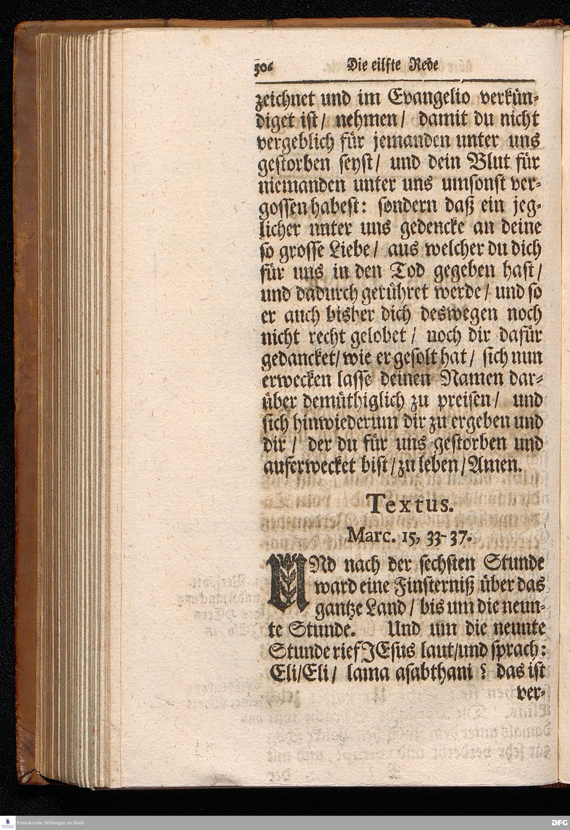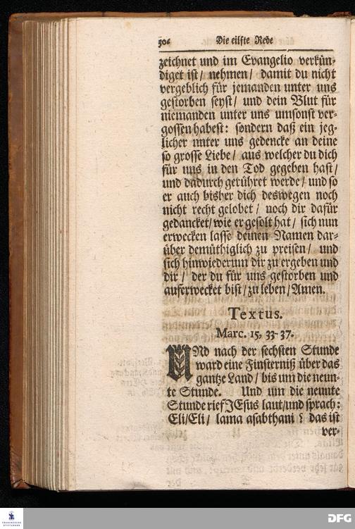 August Hermann Franckens S.Theol.Prof.Ord.und Past. Oeffentliche Reden über die Paßions=Historie / Wie dieselbe vom Evangelisten Marco im 14. und 15. Cap. beschrieben ist / gehalten Von Esto mihi bis Ostern 1712. In dem Wäysenhause zu Glaucha an Halle. HALLE, Gedruckt und verlegt im Wäysenhause, MDCCXV.