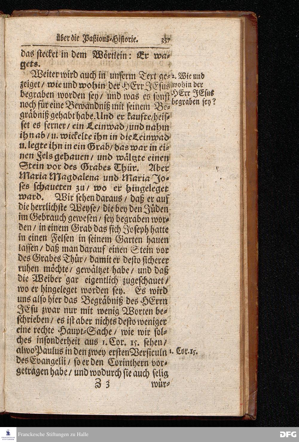 August Hermann Franckens S.Theol.Prof.Ord.und Past. Oeffentliche Reden über die Paßions=Historie / Wie dieselbe vom Evangelisten Marco im 14. und 15. Cap. beschrieben ist / gehalten Von Esto mihi bis Ostern 1712. In dem Wäysenhause zu Glaucha an Halle. HALLE, Gedruckt und verlegt im Wäysenhause, MDCCXV.