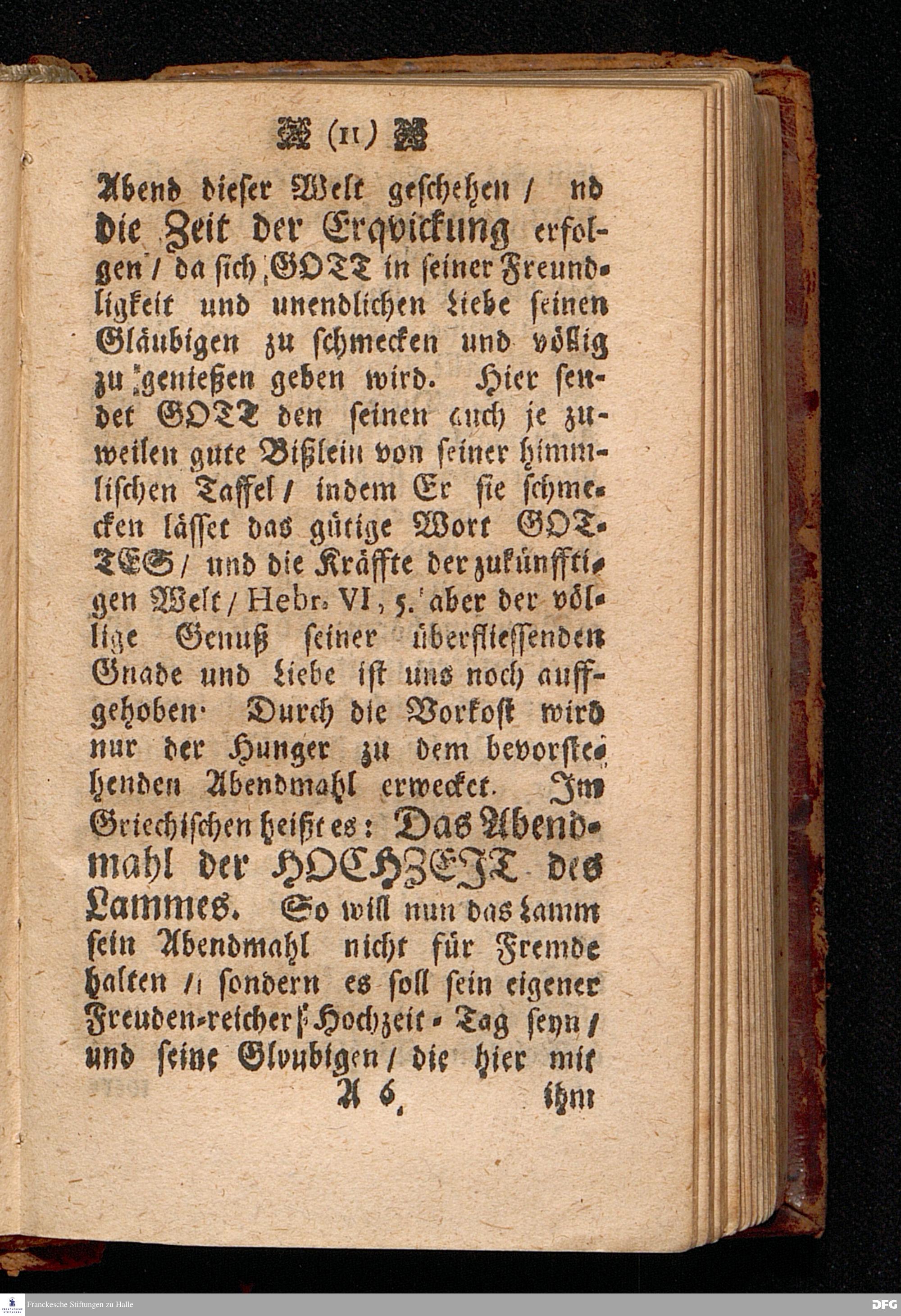 Das Abendmahl des Lammes / In einer Predigt Uber das Evangelium Luc.XIV, vers.16---24. Am 2.Sonntage nach dem Feste der H.Drey=Einigkeit Anno 1697. In der Chur=Fürstlichen Schloß=Kirchen in Lichtenburg in Sachsen / vorgestellet / von M.August Hermann Francken / SS.Theol.P.P.Ord.& Past.Glauch. HALLE / 1701.