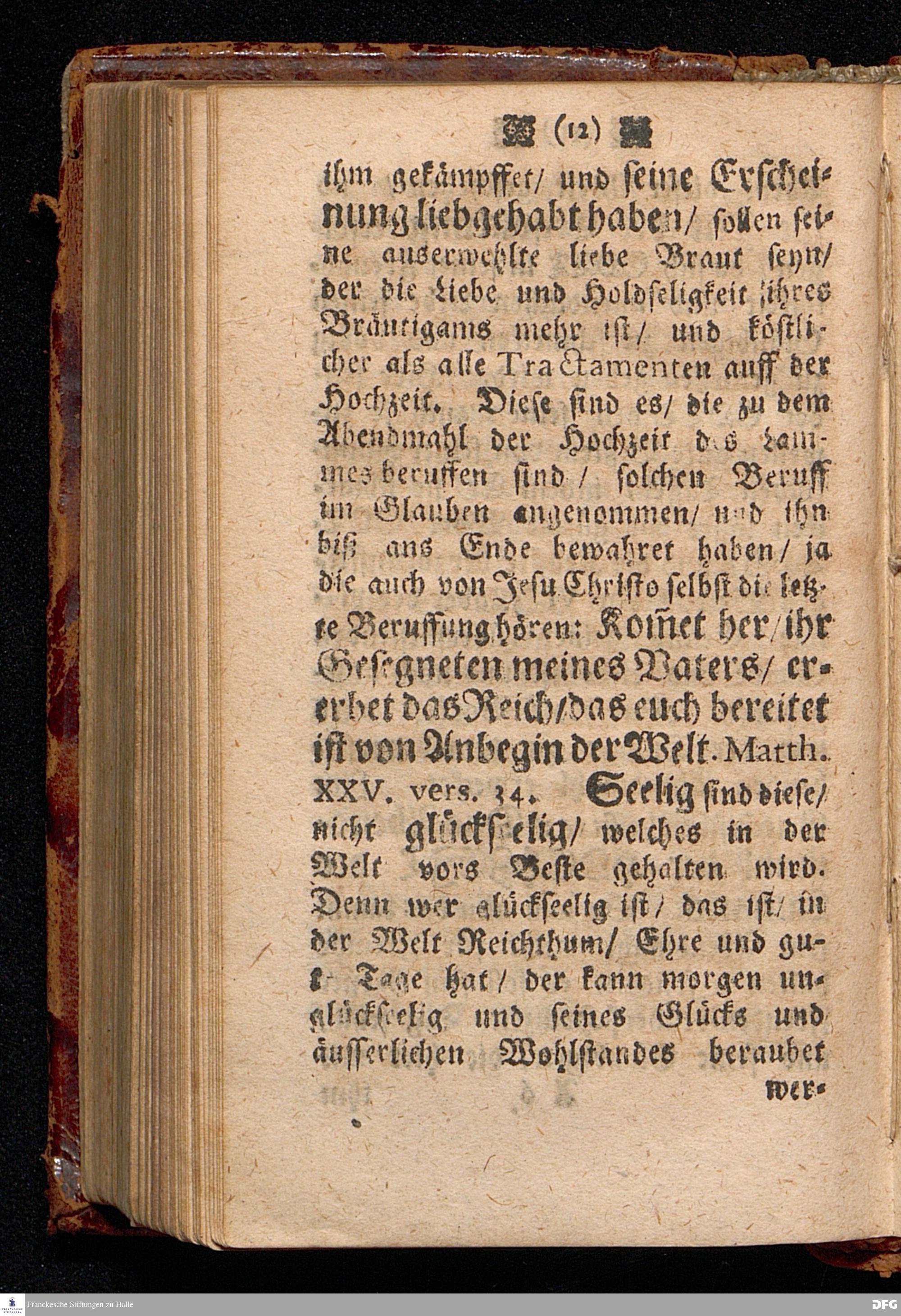 Das Abendmahl des Lammes / In einer Predigt Uber das Evangelium Luc.XIV, vers.16---24. Am 2.Sonntage nach dem Feste der H.Drey=Einigkeit Anno 1697. In der Chur=Fürstlichen Schloß=Kirchen in Lichtenburg in Sachsen / vorgestellet / von M.August Hermann Francken / SS.Theol.P.P.Ord.& Past.Glauch. HALLE / 1701.