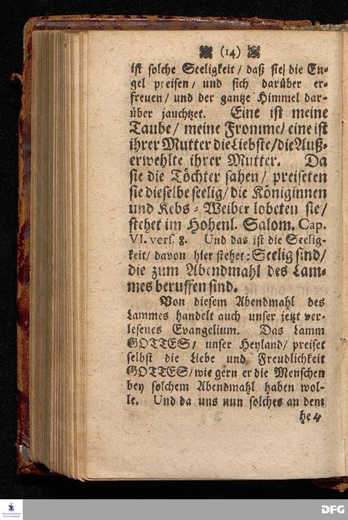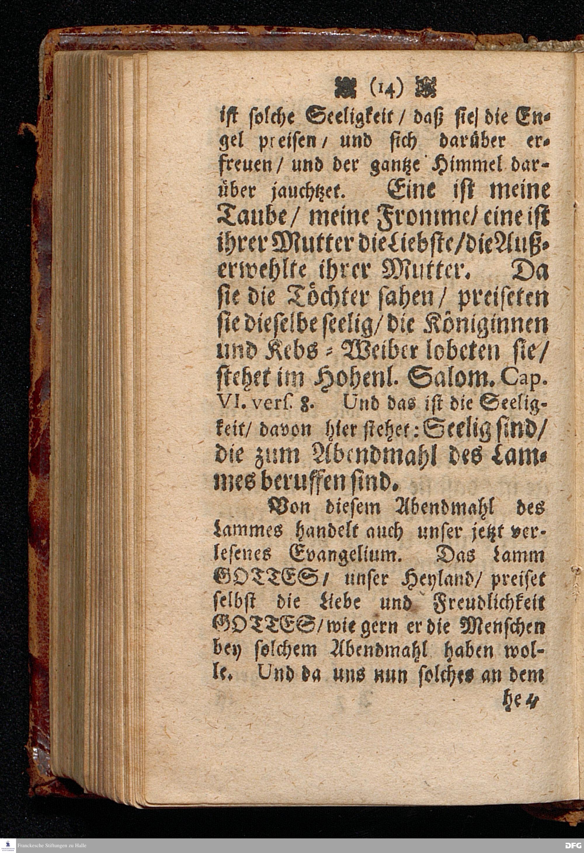 Das Abendmahl des Lammes / In einer Predigt Uber das Evangelium Luc.XIV, vers.16---24. Am 2.Sonntage nach dem Feste der H.Drey=Einigkeit Anno 1697. In der Chur=Fürstlichen Schloß=Kirchen in Lichtenburg in Sachsen / vorgestellet / von M.August Hermann Francken / SS.Theol.P.P.Ord.& Past.Glauch. HALLE / 1701.