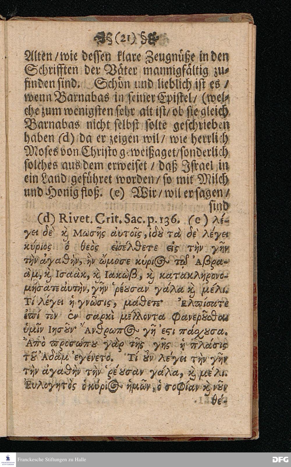 Quedlinburgisches Zeugniß / Oder Predigt Von der Offenbahrung der Herrlichkeit Christi / Uber das Evangelium Joh.II. v.1-11. Am II.Sont.nach Epiphan. In der Quedlinburgischen Schloß=Kirchen bey zufälliger Gelegenheit / auff geschehene Ansuchung abgeleget / Und in etwas erweitert zum Druck gegeben Von M.Aug.Hermann Francken Gr.& Or.Lingg.P.P.& P.Glauch. Hall[e] / Gedruckt und verlegt von Christoph Salfelden / Churfürstl.Brandenb.Hoff= und Regierungs Buchdrucker.