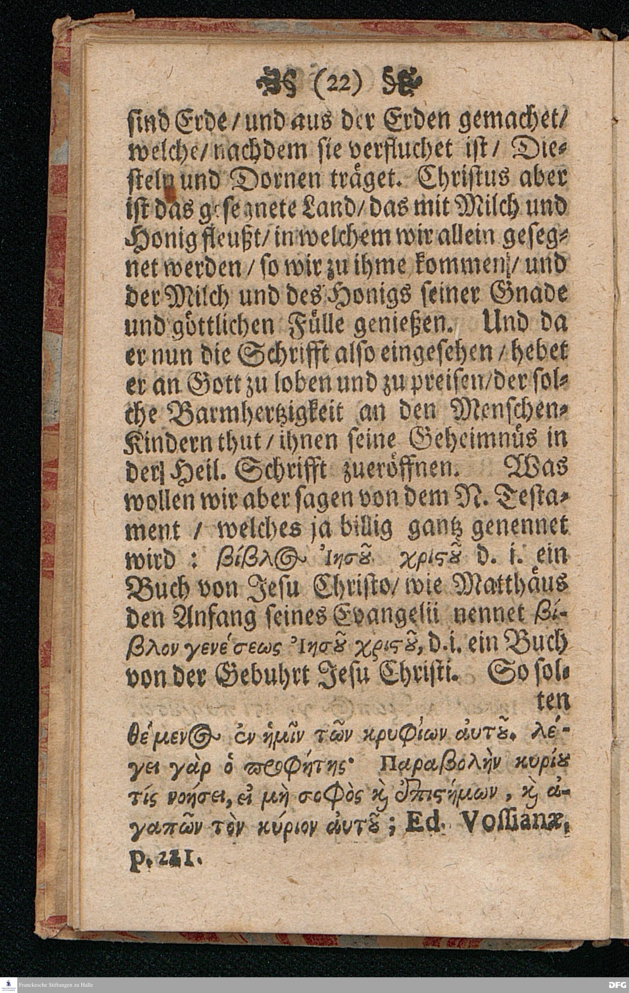 Quedlinburgisches Zeugniß / Oder Predigt Von der Offenbahrung der Herrlichkeit Christi / Uber das Evangelium Joh.II. v.1-11. Am II.Sont.nach Epiphan. In der Quedlinburgischen Schloß=Kirchen bey zufälliger Gelegenheit / auff geschehene Ansuchung abgeleget / Und in etwas erweitert zum Druck gegeben Von M.Aug.Hermann Francken Gr.& Or.Lingg.P.P.& P.Glauch. Hall[e] / Gedruckt und verlegt von Christoph Salfelden / Churfürstl.Brandenb.Hoff= und Regierungs Buchdrucker.