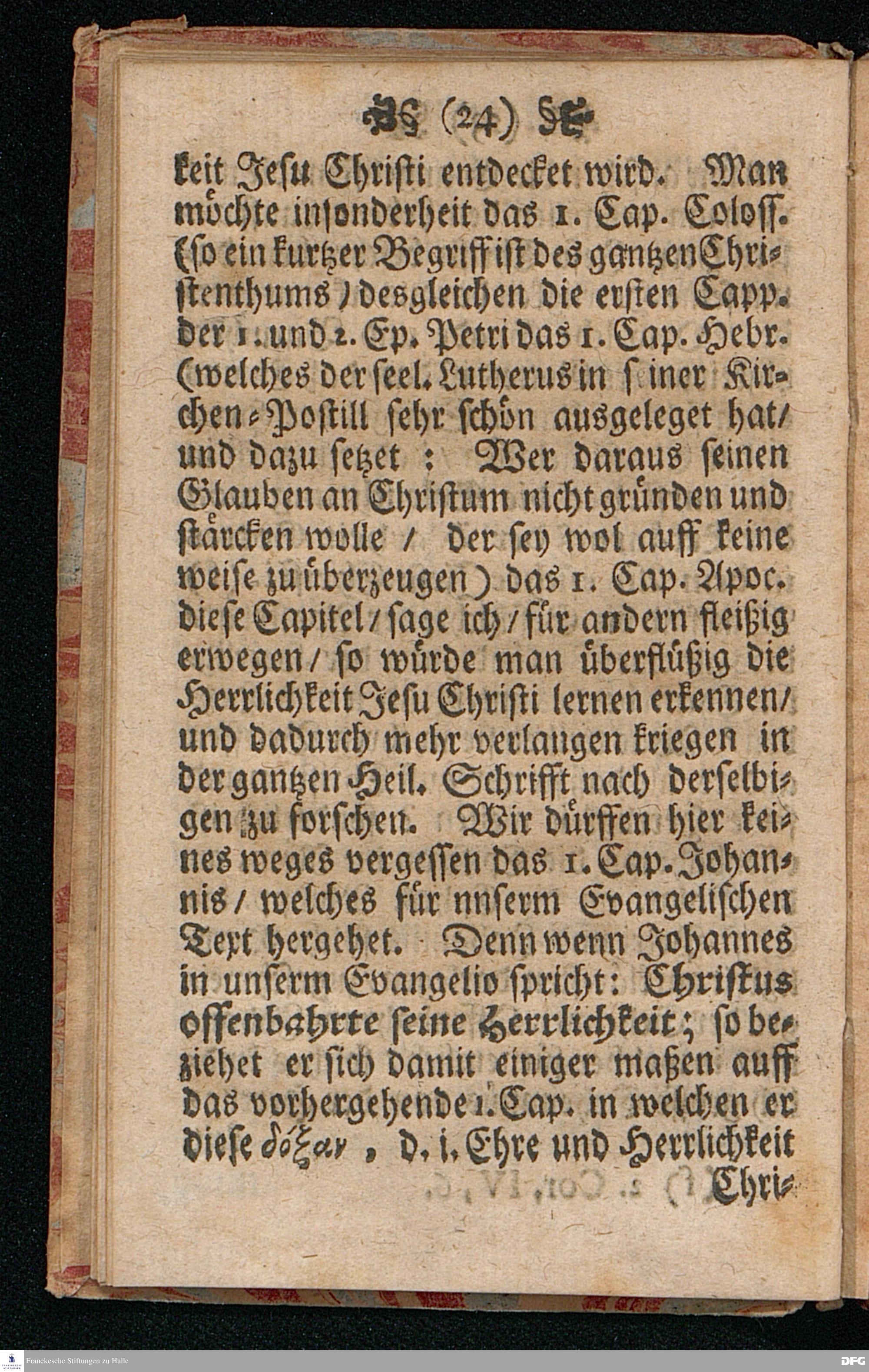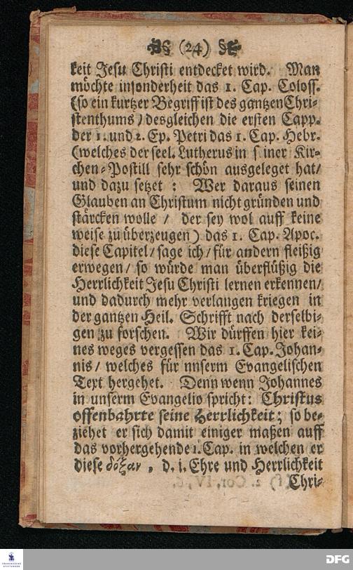 Quedlinburgisches Zeugniß / Oder Predigt Von der Offenbahrung der Herrlichkeit Christi / Uber das Evangelium Joh.II. v.1-11. Am II.Sont.nach Epiphan. In der Quedlinburgischen Schloß=Kirchen bey zufälliger Gelegenheit / auff geschehene Ansuchung abgeleget / Und in etwas erweitert zum Druck gegeben Von M.Aug.Hermann Francken Gr.& Or.Lingg.P.P.& P.Glauch. Hall[e] / Gedruckt und verlegt von Christoph Salfelden / Churfürstl.Brandenb.Hoff= und Regierungs Buchdrucker.