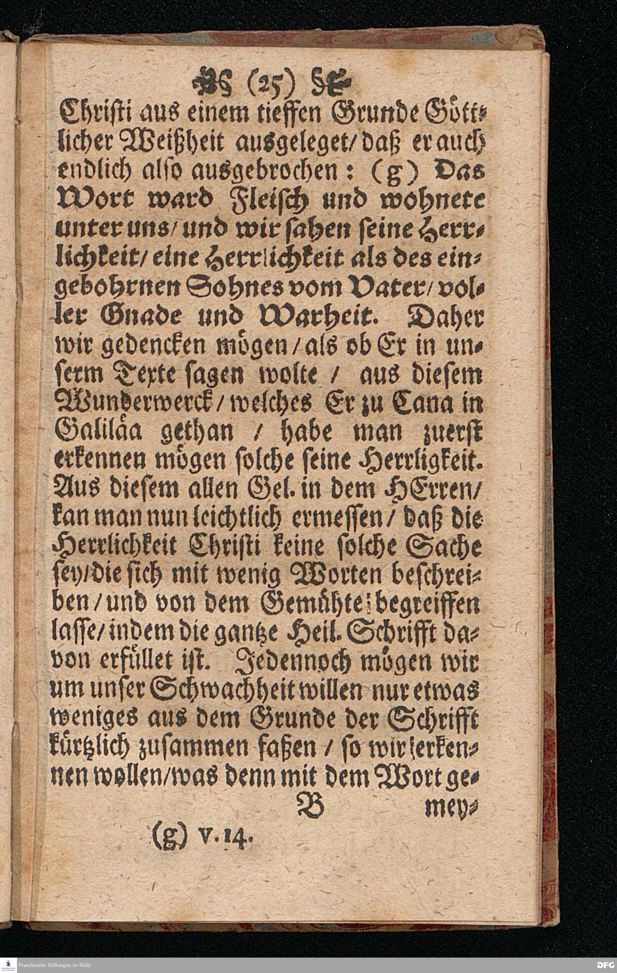 Quedlinburgisches Zeugniß / Oder Predigt Von der Offenbahrung der Herrlichkeit Christi / Uber das Evangelium Joh.II. v.1-11. Am II.Sont.nach Epiphan. In der Quedlinburgischen Schloß=Kirchen bey zufälliger Gelegenheit / auff geschehene Ansuchung abgeleget / Und in etwas erweitert zum Druck gegeben Von M.Aug.Hermann Francken Gr.& Or.Lingg.P.P.& P.Glauch. Hall[e] / Gedruckt und verlegt von Christoph Salfelden / Churfürstl.Brandenb.Hoff= und Regierungs Buchdrucker.