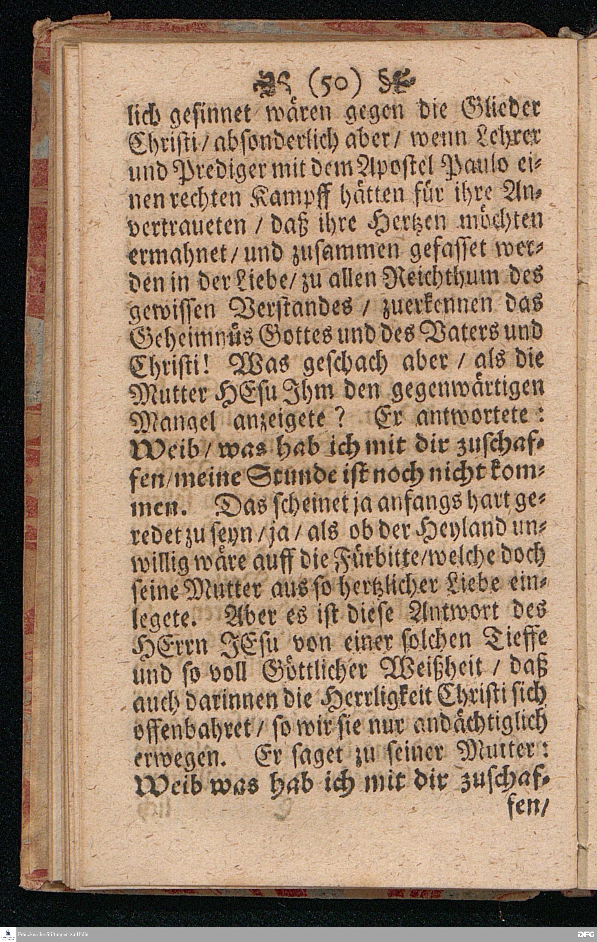 Quedlinburgisches Zeugniß / Oder Predigt Von der Offenbahrung der Herrlichkeit Christi / Uber das Evangelium Joh.II. v.1-11. Am II.Sont.nach Epiphan. In der Quedlinburgischen Schloß=Kirchen bey zufälliger Gelegenheit / auff geschehene Ansuchung abgeleget / Und in etwas erweitert zum Druck gegeben Von M.Aug.Hermann Francken Gr.& Or.Lingg.P.P.& P.Glauch. Hall[e] / Gedruckt und verlegt von Christoph Salfelden / Churfürstl.Brandenb.Hoff= und Regierungs Buchdrucker.