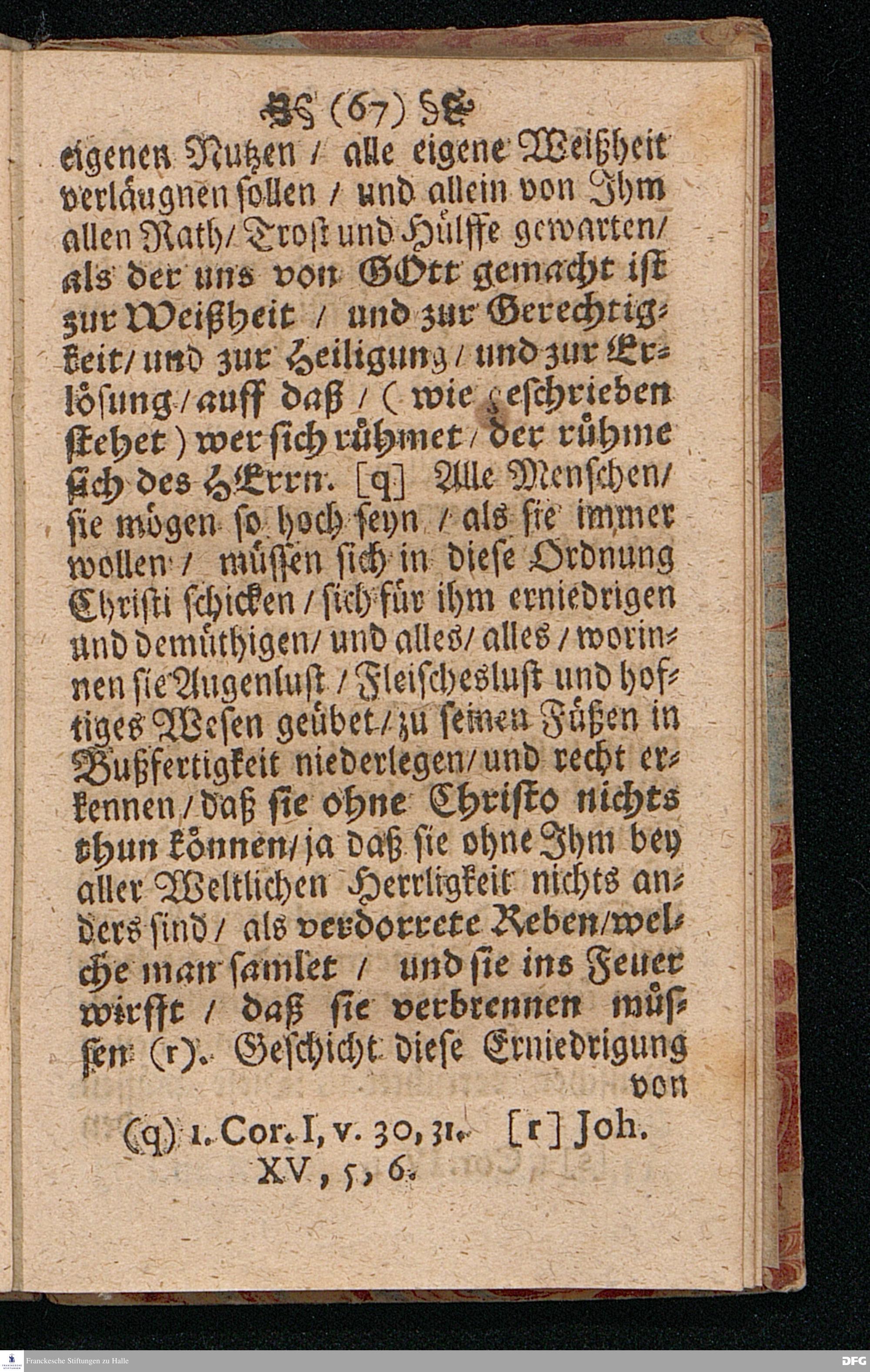 Quedlinburgisches Zeugniß / Oder Predigt Von der Offenbahrung der Herrlichkeit Christi / Uber das Evangelium Joh.II. v.1-11. Am II.Sont.nach Epiphan. In der Quedlinburgischen Schloß=Kirchen bey zufälliger Gelegenheit / auff geschehene Ansuchung abgeleget / Und in etwas erweitert zum Druck gegeben Von M.Aug.Hermann Francken Gr.& Or.Lingg.P.P.& P.Glauch. Hall[e] / Gedruckt und verlegt von Christoph Salfelden / Churfürstl.Brandenb.Hoff= und Regierungs Buchdrucker.