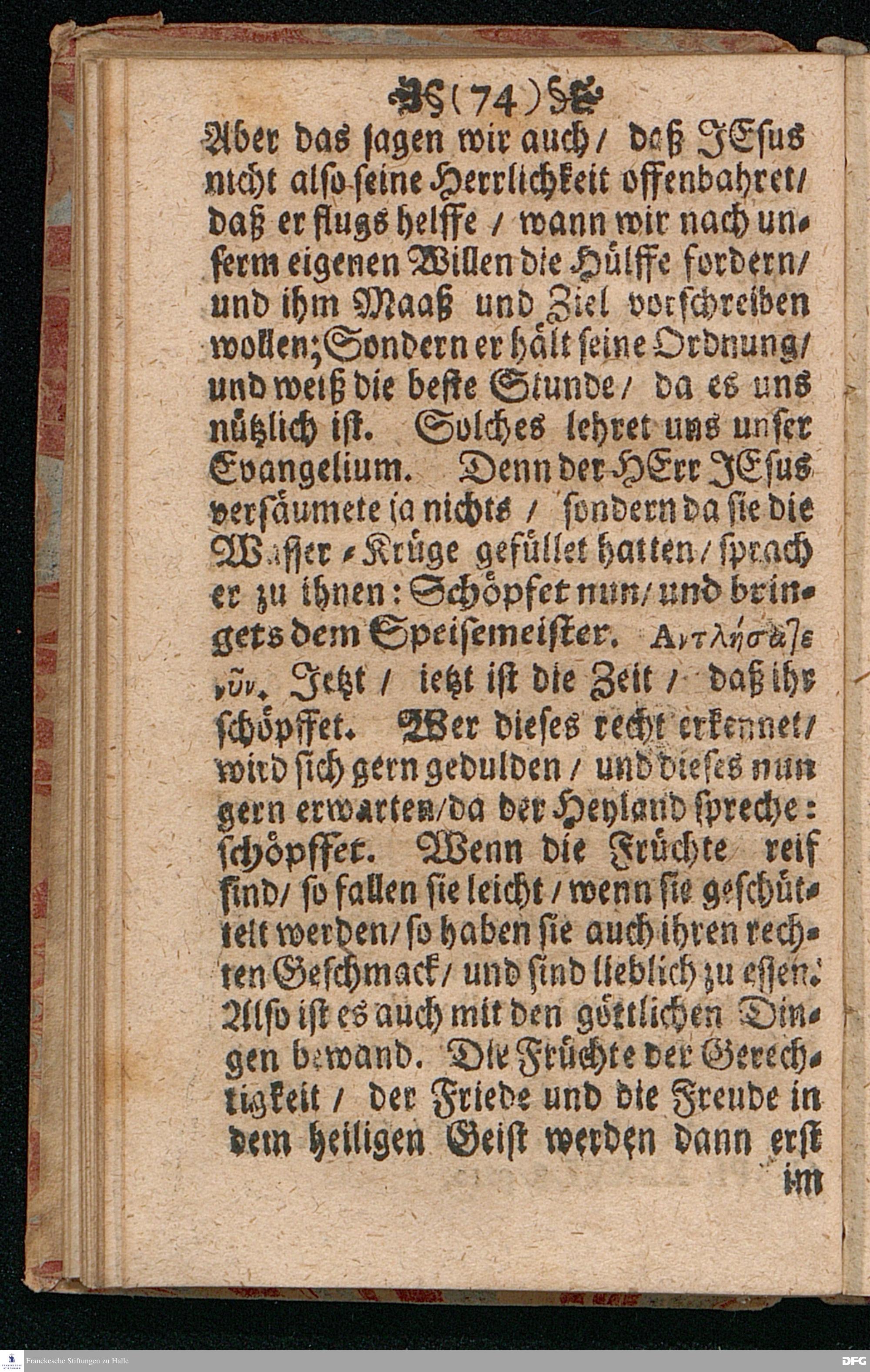 Quedlinburgisches Zeugniß / Oder Predigt Von der Offenbahrung der Herrlichkeit Christi / Uber das Evangelium Joh.II. v.1-11. Am II.Sont.nach Epiphan. In der Quedlinburgischen Schloß=Kirchen bey zufälliger Gelegenheit / auff geschehene Ansuchung abgeleget / Und in etwas erweitert zum Druck gegeben Von M.Aug.Hermann Francken Gr.& Or.Lingg.P.P.& P.Glauch. Hall[e] / Gedruckt und verlegt von Christoph Salfelden / Churfürstl.Brandenb.Hoff= und Regierungs Buchdrucker.