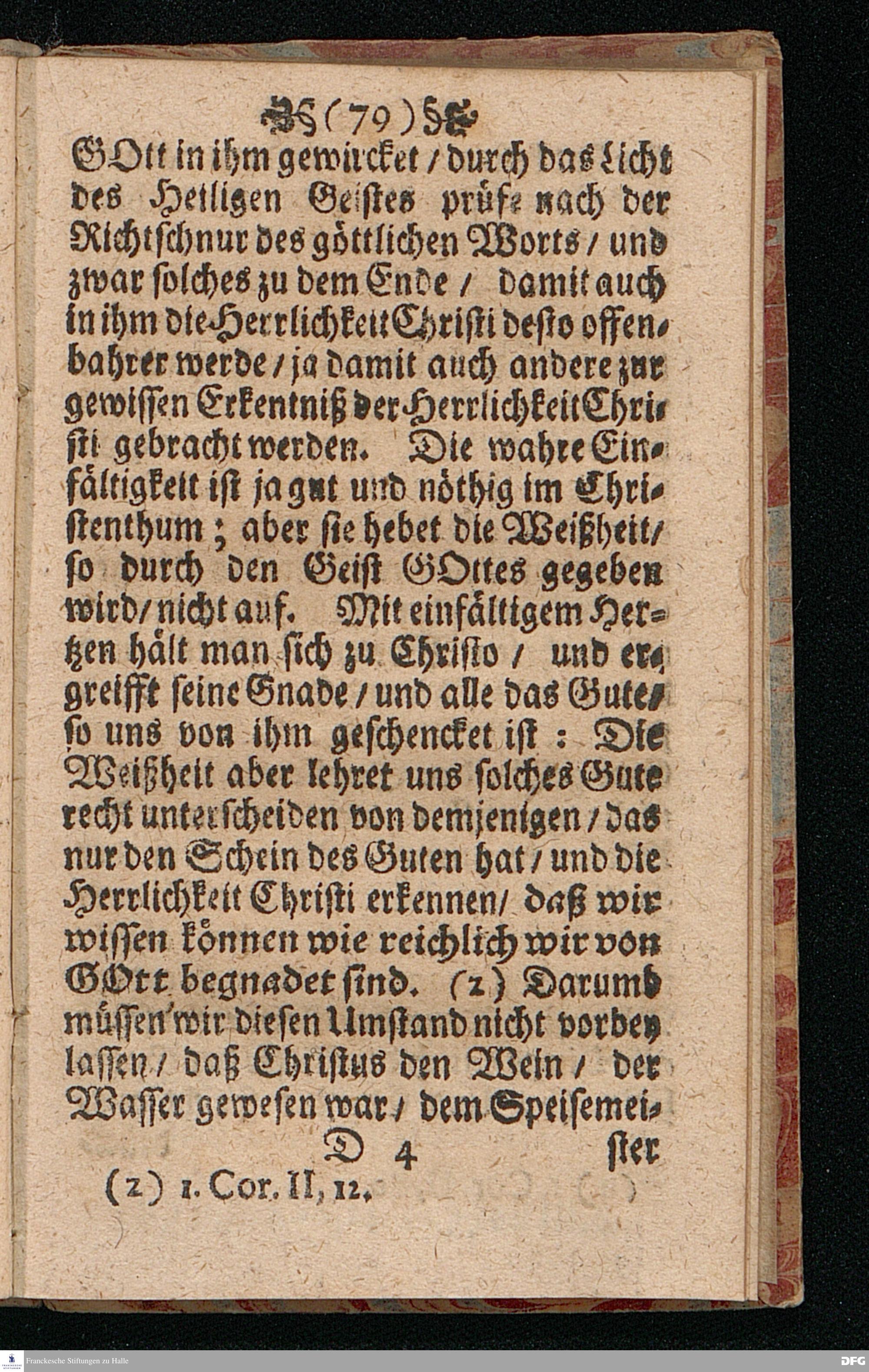 Quedlinburgisches Zeugniß / Oder Predigt Von der Offenbahrung der Herrlichkeit Christi / Uber das Evangelium Joh.II. v.1-11. Am II.Sont.nach Epiphan. In der Quedlinburgischen Schloß=Kirchen bey zufälliger Gelegenheit / auff geschehene Ansuchung abgeleget / Und in etwas erweitert zum Druck gegeben Von M.Aug.Hermann Francken Gr.& Or.Lingg.P.P.& P.Glauch. Hall[e] / Gedruckt und verlegt von Christoph Salfelden / Churfürstl.Brandenb.Hoff= und Regierungs Buchdrucker.