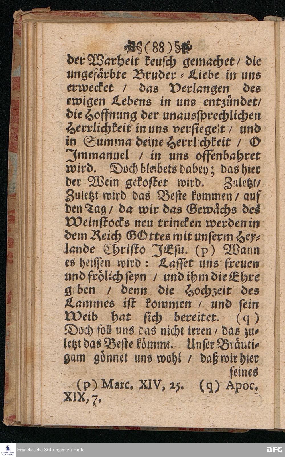 Quedlinburgisches Zeugniß / Oder Predigt Von der Offenbahrung der Herrlichkeit Christi / Uber das Evangelium Joh.II. v.1-11. Am II.Sont.nach Epiphan. In der Quedlinburgischen Schloß=Kirchen bey zufälliger Gelegenheit / auff geschehene Ansuchung abgeleget / Und in etwas erweitert zum Druck gegeben Von M.Aug.Hermann Francken Gr.& Or.Lingg.P.P.& P.Glauch. Hall[e] / Gedruckt und verlegt von Christoph Salfelden / Churfürstl.Brandenb.Hoff= und Regierungs Buchdrucker.