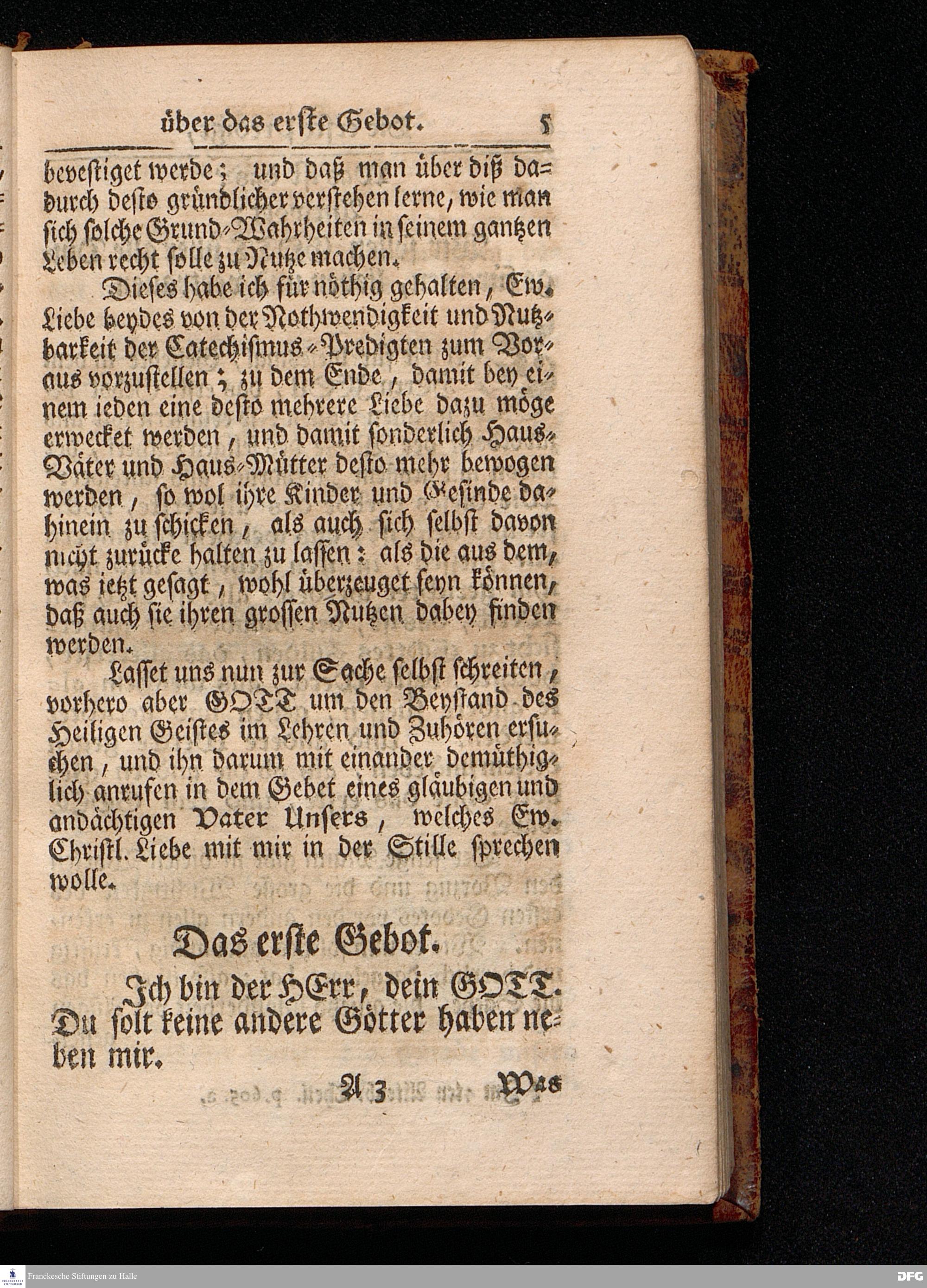 August Hermann Franckens / S.Th.Pr.Past.Vlr.& Schol. Catechismus = Predigten / Darinnen Die V.Hauptstücke des kleinen Catechismi Lutheri, zu gründlicher Erbauung im wahren thätigen Christenthum, abgehandelt sind, gehalten In der Kirche zur L.Frauen zu Halle / im Hertzogthum Magdeburg. Andere Auflage. HALLE, In Verlegung des Wäysenhauses, MDCCXXIX.
