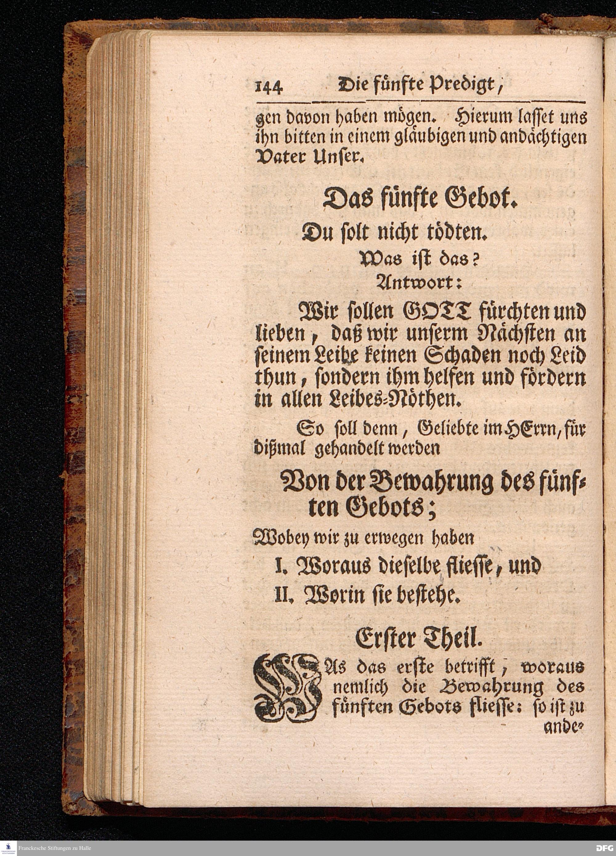 August Hermann Franckens / S.Th.Pr.Past.Vlr.& Schol. Catechismus = Predigten / Darinnen Die V.Hauptstücke des kleinen Catechismi Lutheri, zu gründlicher Erbauung im wahren thätigen Christenthum, abgehandelt sind, gehalten In der Kirche zur L.Frauen zu Halle / im Hertzogthum Magdeburg. Andere Auflage. HALLE, In Verlegung des Wäysenhauses, MDCCXXIX.