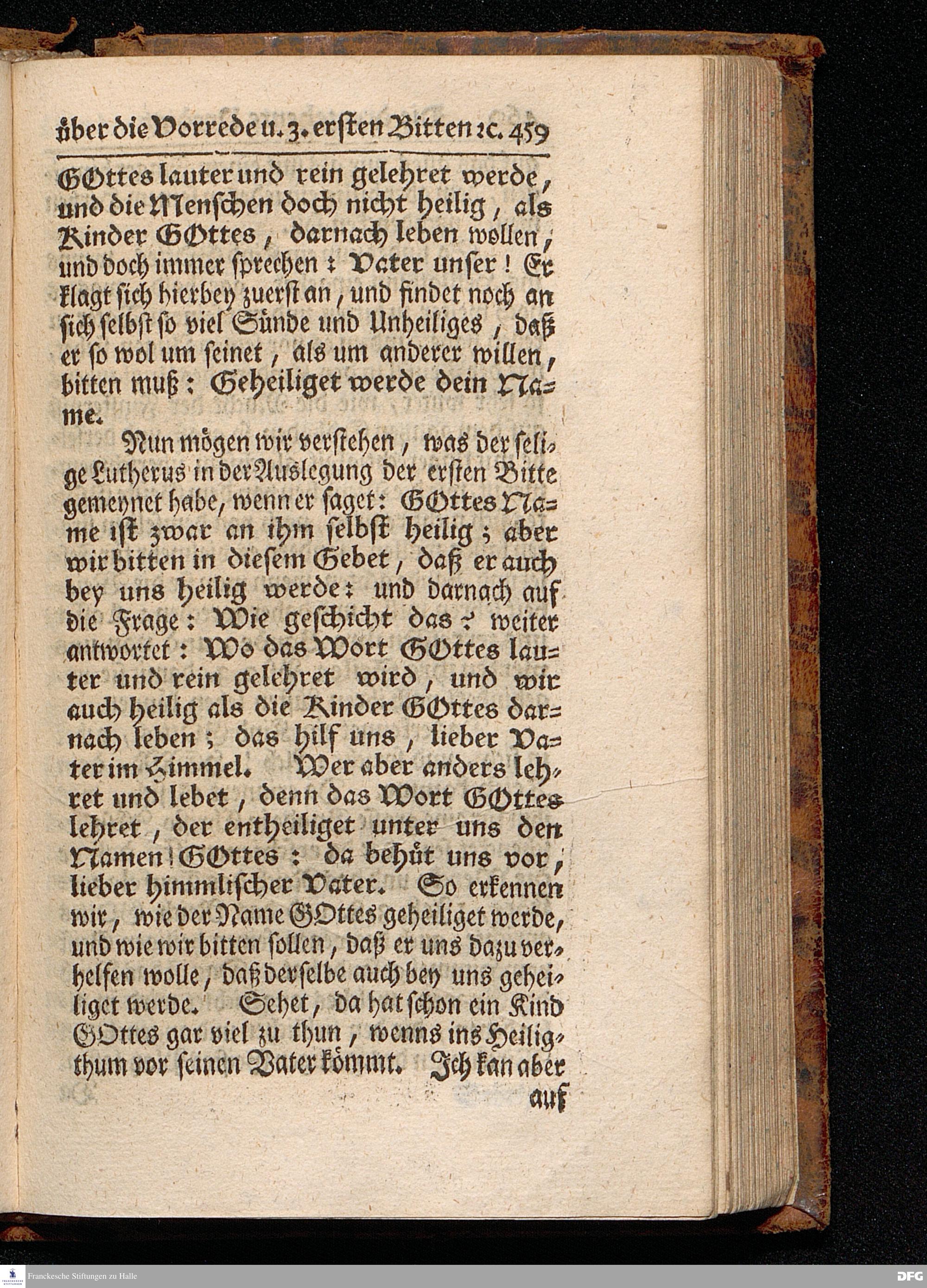 August Hermann Franckens / S.Th.Pr.Past.Vlr.& Schol. Catechismus = Predigten / Darinnen Die V.Hauptstücke des kleinen Catechismi Lutheri, zu gründlicher Erbauung im wahren thätigen Christenthum, abgehandelt sind, gehalten In der Kirche zur L.Frauen zu Halle / im Hertzogthum Magdeburg. Andere Auflage. HALLE, In Verlegung des Wäysenhauses, MDCCXXIX.