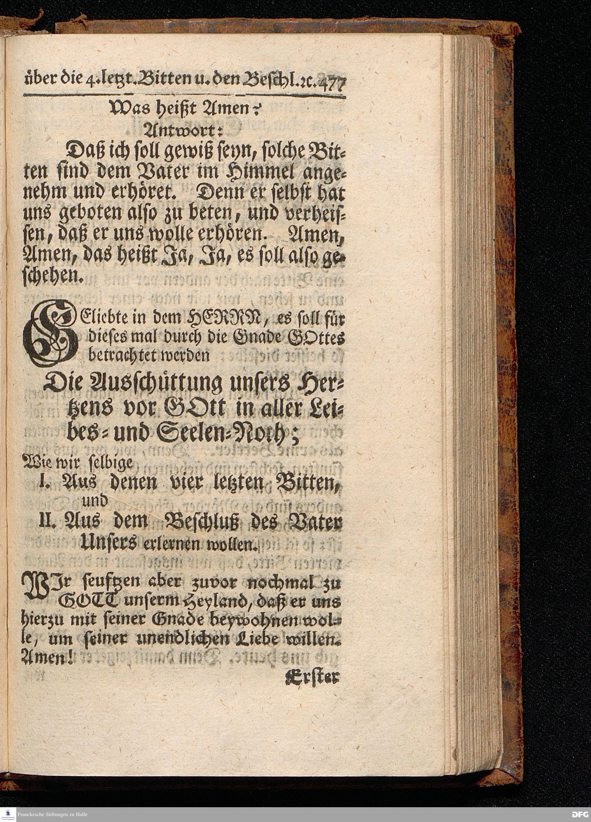 August Hermann Franckens / S.Th.Pr.Past.Vlr.& Schol. Catechismus = Predigten / Darinnen Die V.Hauptstücke des kleinen Catechismi Lutheri, zu gründlicher Erbauung im wahren thätigen Christenthum, abgehandelt sind, gehalten In der Kirche zur L.Frauen zu Halle / im Hertzogthum Magdeburg. Andere Auflage. HALLE, In Verlegung des Wäysenhauses, MDCCXXIX.
