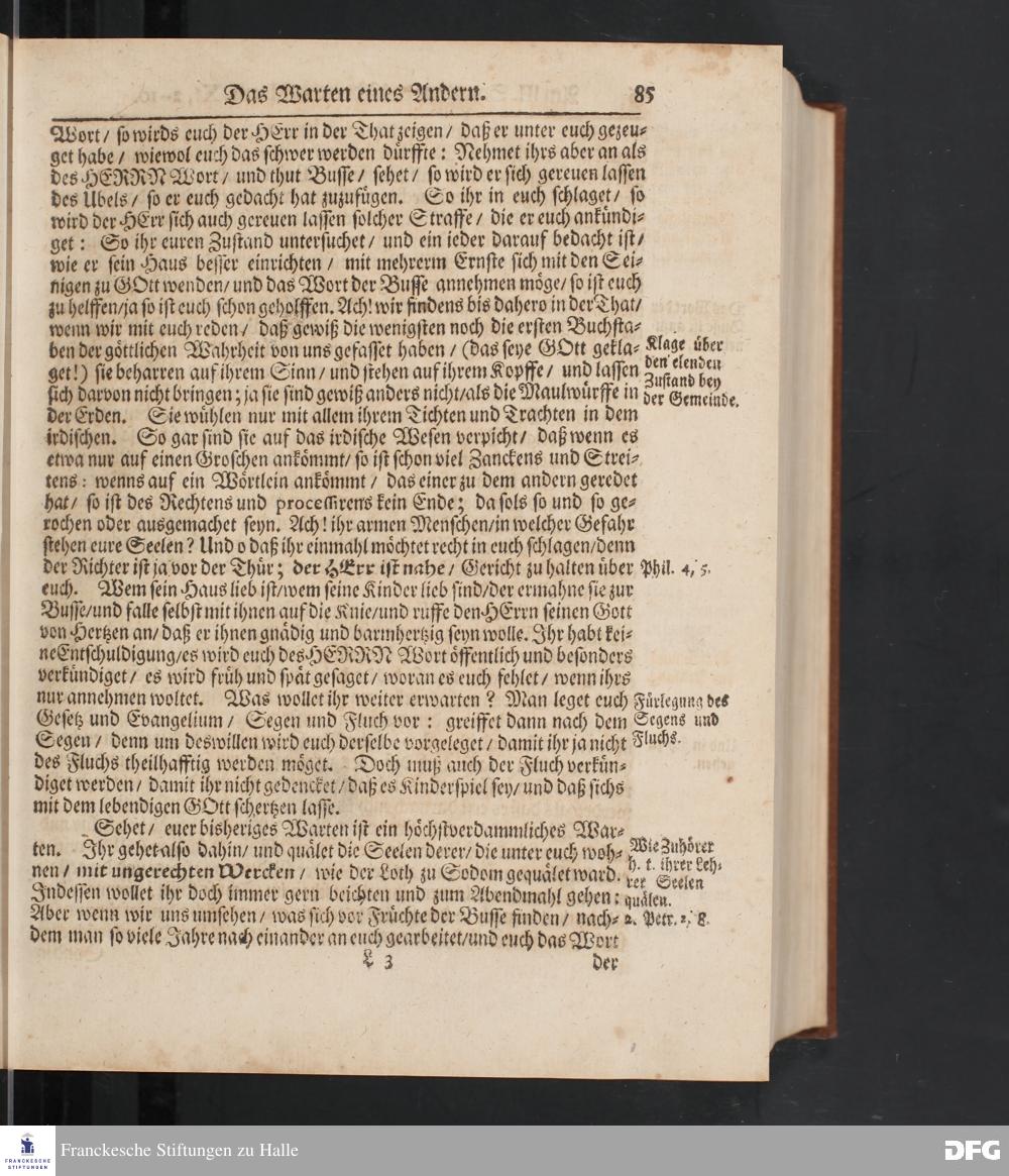 August Hermann Franckens S.Theol.Prof.und Past. Sonn= Fest= und Apostel=Tags=-Predigten / Darinnen Die zum wahren Christenthum gehörige nöthigste und vornehmste Materien abgehandelt sind; Nunmehro von neuen wieder durchgesehen / und mit einigen Predigten vermehret / Nebst den darzu nützlichen Registern. Die vierte EDITION. HALLE / gedruckt und verlegt im Wäysen=Hause / MDCCXV. Mit Königl.Preuß.und Churfl.Brandenb.Privil.