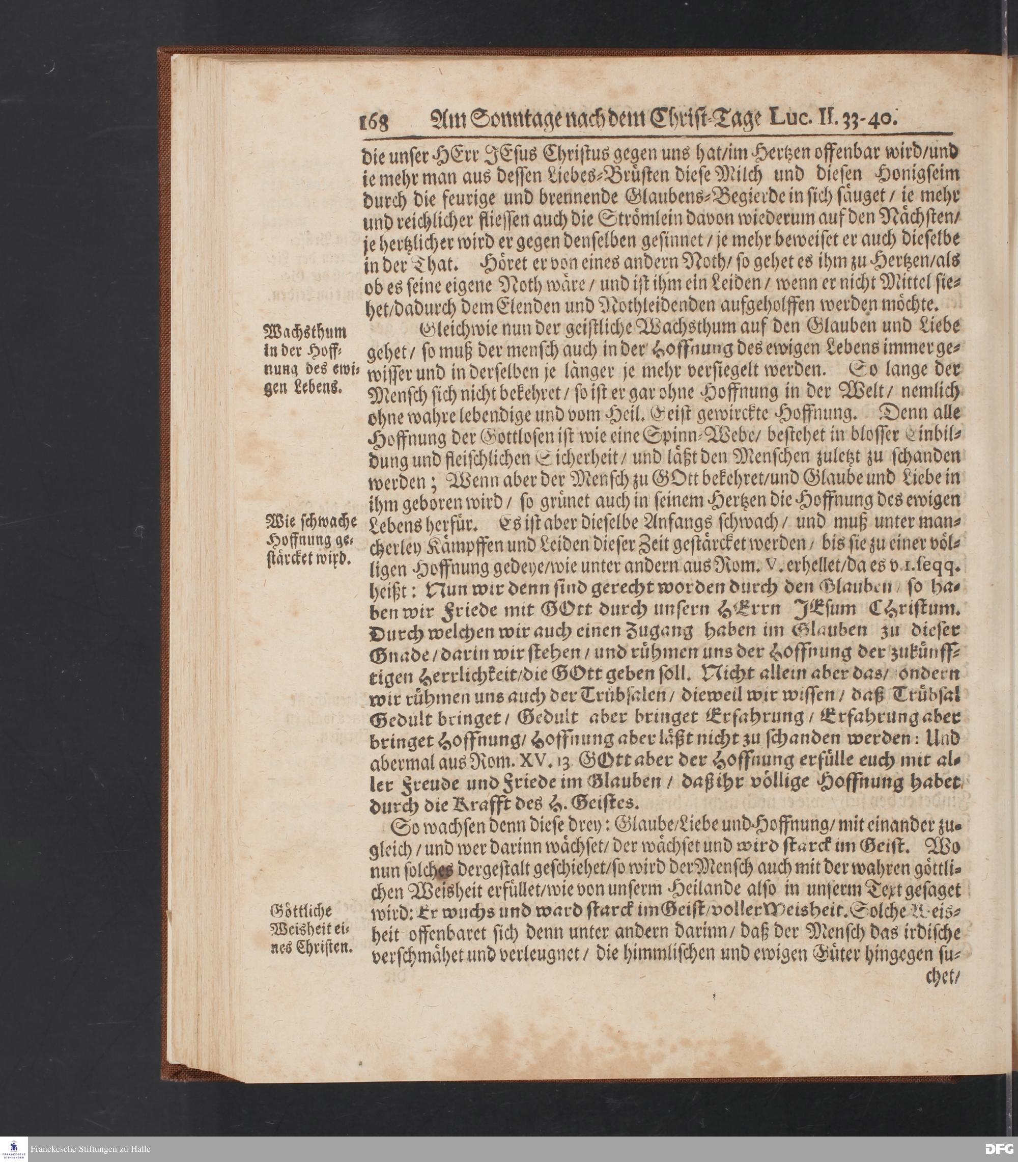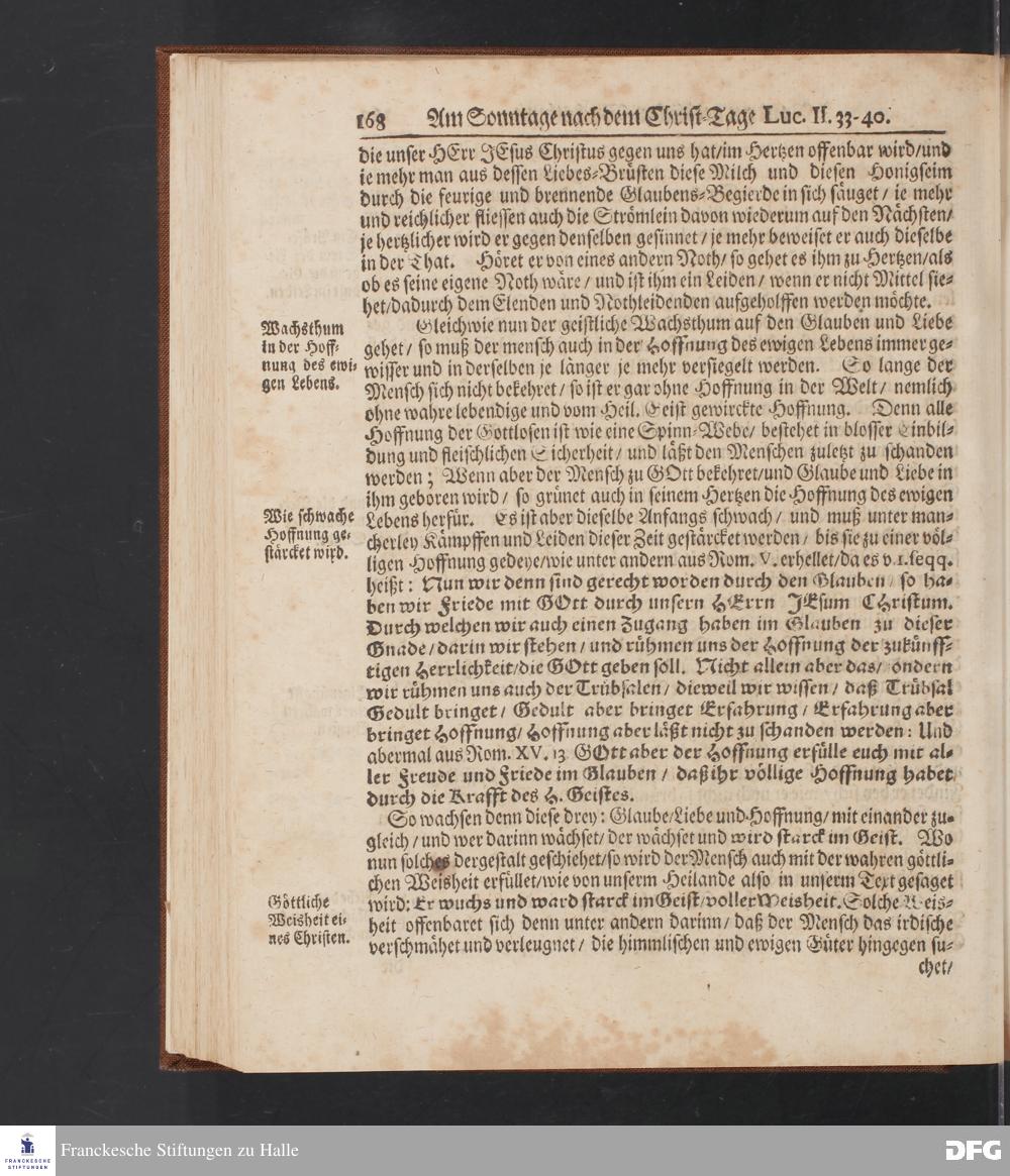 August Hermann Franckens S.Theol.Prof.und Past. Sonn= Fest= und Apostel=Tags=-Predigten / Darinnen Die zum wahren Christenthum gehörige nöthigste und vornehmste Materien abgehandelt sind; Nunmehro von neuen wieder durchgesehen / und mit einigen Predigten vermehret / Nebst den darzu nützlichen Registern. Die vierte EDITION. HALLE / gedruckt und verlegt im Wäysen=Hause / MDCCXV. Mit Königl.Preuß.und Churfl.Brandenb.Privil.
