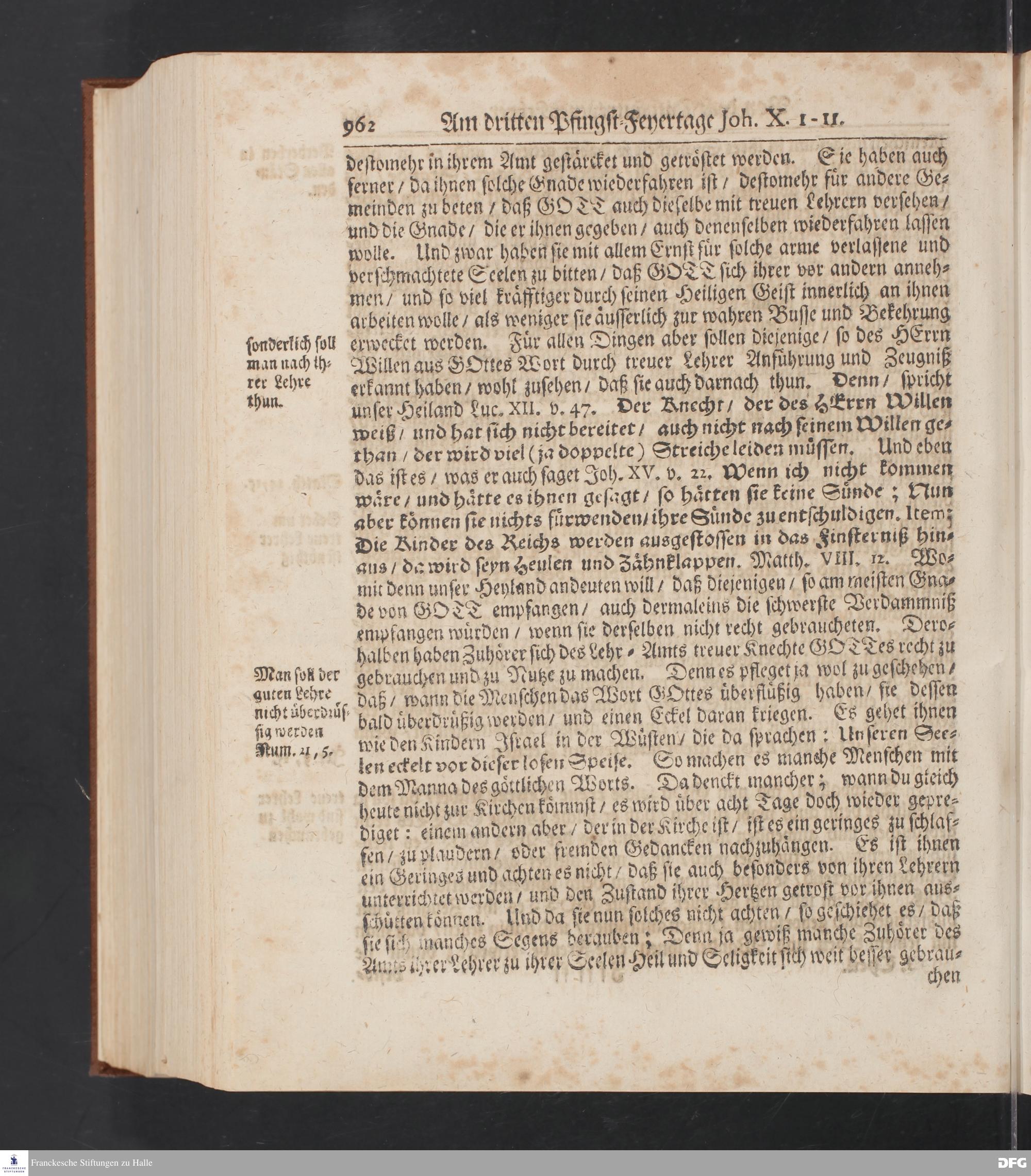 August Hermann Franckens S.Theol.Prof.und Past. Sonn= Fest= und Apostel=Tags=-Predigten / Darinnen Die zum wahren Christenthum gehörige nöthigste und vornehmste Materien abgehandelt sind; Nunmehro von neuen wieder durchgesehen / und mit einigen Predigten vermehret / Nebst den darzu nützlichen Registern. Die vierte EDITION. HALLE / gedruckt und verlegt im Wäysen=Hause / MDCCXV. Mit Königl.Preuß.und Churfl.Brandenb.Privil.