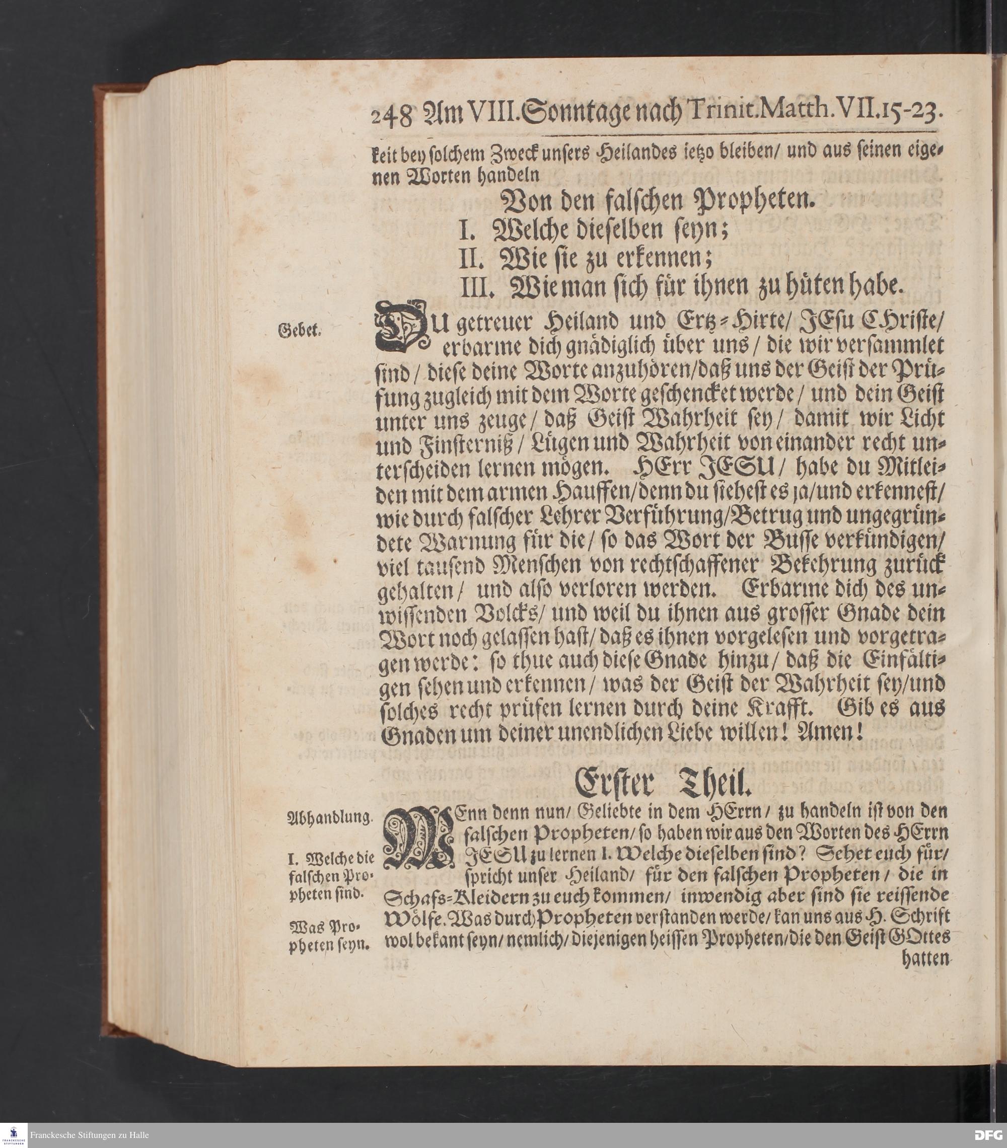 August Hermann Franckens S.Theol.Prof.und Past. Sonn= Fest= und Apostel=Tags=-Predigten / Darinnen Die zum wahren Christenthum gehörige nöthigste und vornehmste Materien abgehandelt sind; Nunmehro von neuen wieder durchgesehen / und mit einigen Predigten vermehret / Nebst den darzu nützlichen Registern. Die vierte EDITION. HALLE / gedruckt und verlegt im Wäysen=Hause / MDCCXV. Mit Königl.Preuß.und Churfl.Brandenb.Privil.