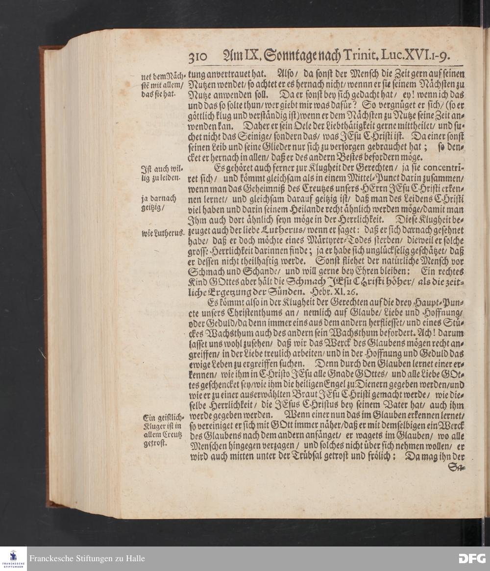 August Hermann Franckens S.Theol.Prof.und Past. Sonn= Fest= und Apostel=Tags=-Predigten / Darinnen Die zum wahren Christenthum gehörige nöthigste und vornehmste Materien abgehandelt sind; Nunmehro von neuen wieder durchgesehen / und mit einigen Predigten vermehret / Nebst den darzu nützlichen Registern. Die vierte EDITION. HALLE / gedruckt und verlegt im Wäysen=Hause / MDCCXV. Mit Königl.Preuß.und Churfl.Brandenb.Privil.