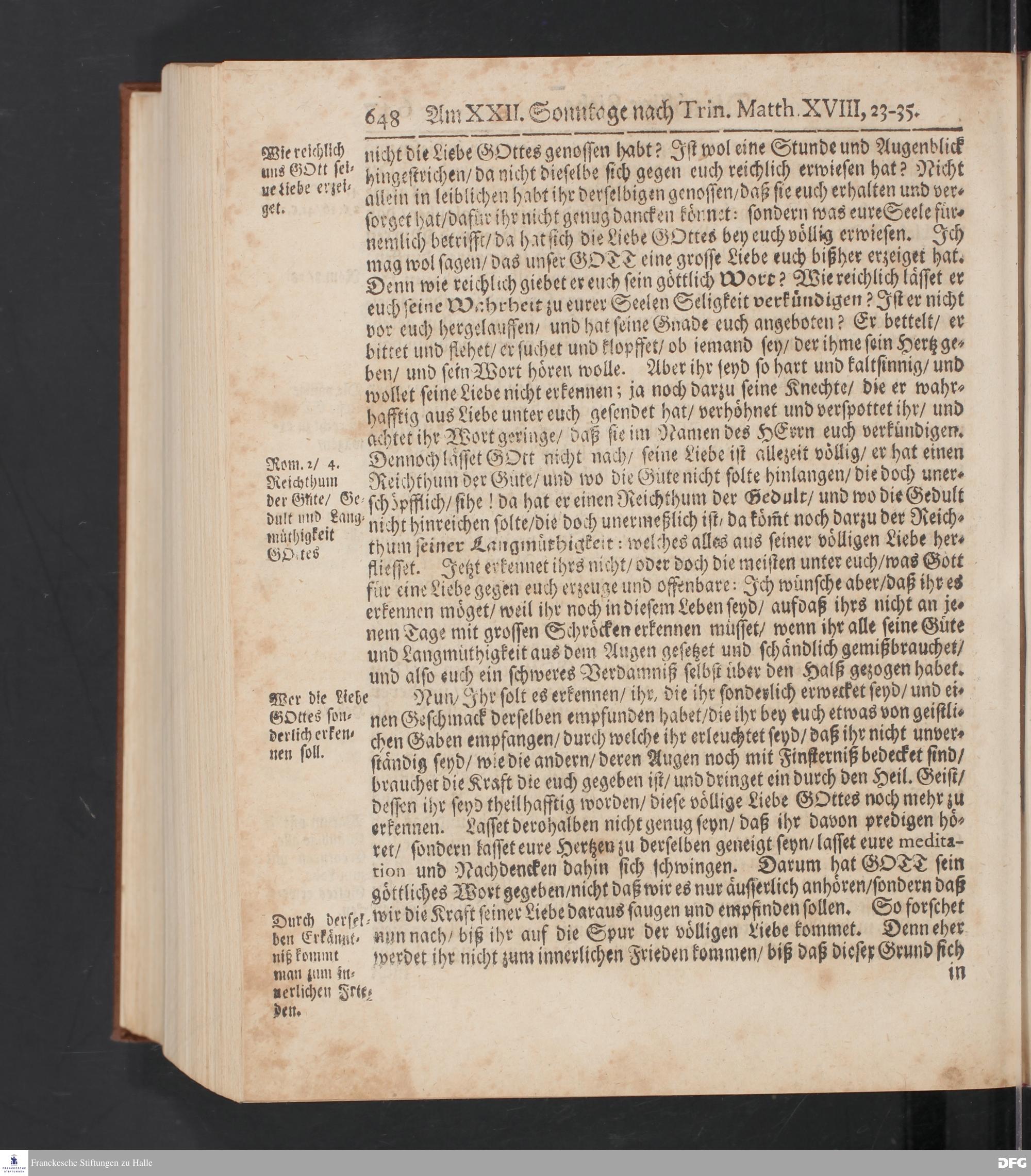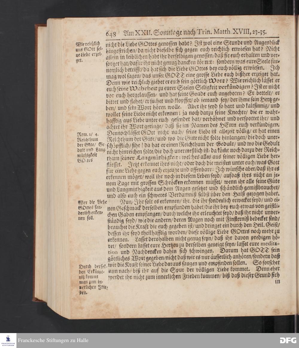 August Hermann Franckens S.Theol.Prof.und Past. Sonn= Fest= und Apostel=Tags=-Predigten / Darinnen Die zum wahren Christenthum gehörige nöthigste und vornehmste Materien abgehandelt sind; Nunmehro von neuen wieder durchgesehen / und mit einigen Predigten vermehret / Nebst den darzu nützlichen Registern. Die vierte EDITION. HALLE / gedruckt und verlegt im Wäysen=Hause / MDCCXV. Mit Königl.Preuß.und Churfl.Brandenb.Privil.