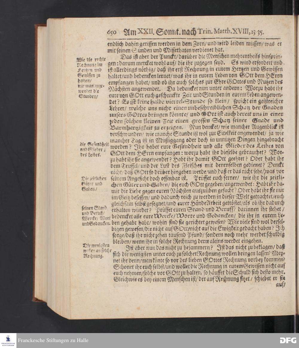 August Hermann Franckens S.Theol.Prof.und Past. Sonn= Fest= und Apostel=Tags=-Predigten / Darinnen Die zum wahren Christenthum gehörige nöthigste und vornehmste Materien abgehandelt sind; Nunmehro von neuen wieder durchgesehen / und mit einigen Predigten vermehret / Nebst den darzu nützlichen Registern. Die vierte EDITION. HALLE / gedruckt und verlegt im Wäysen=Hause / MDCCXV. Mit Königl.Preuß.und Churfl.Brandenb.Privil.