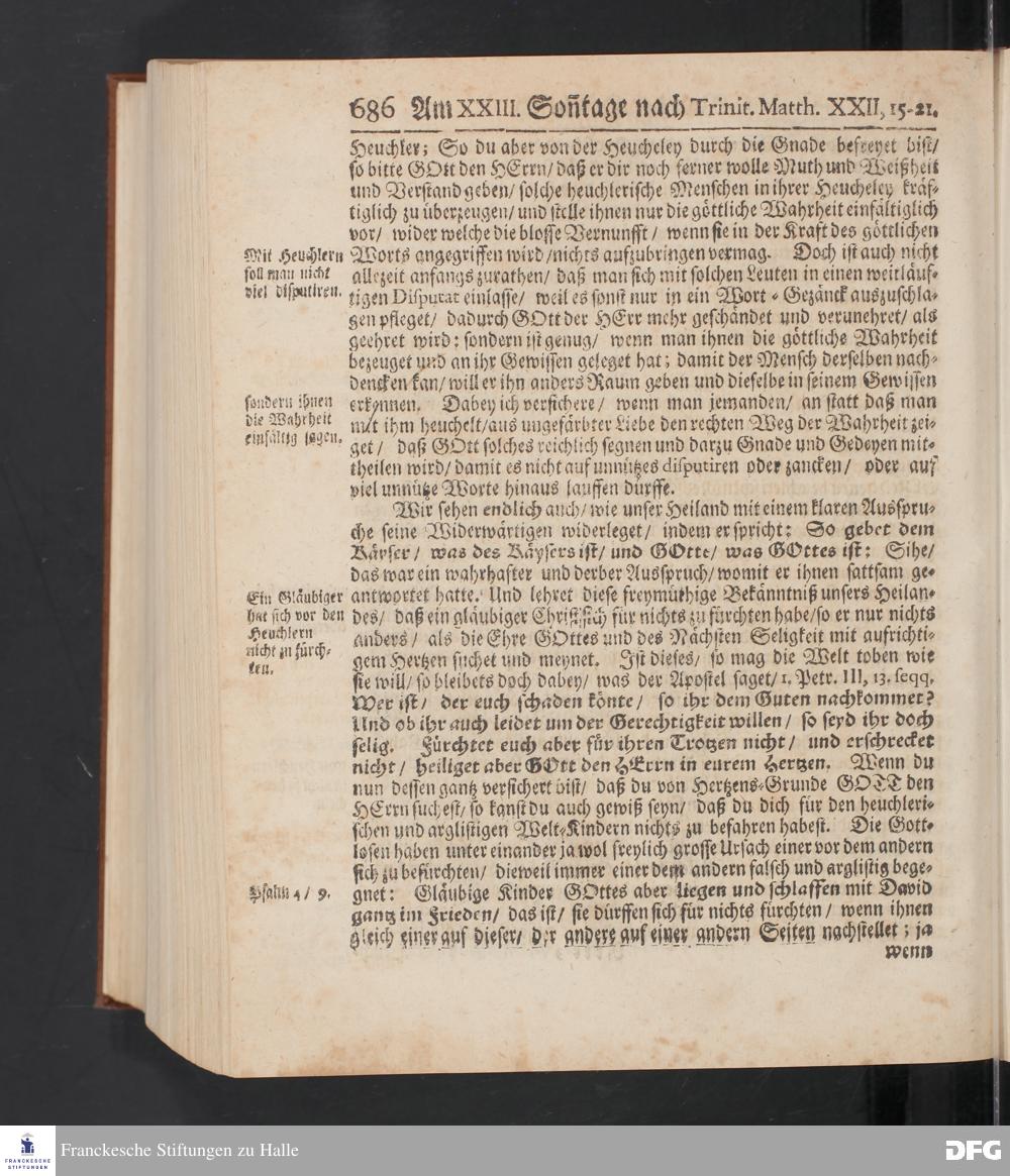August Hermann Franckens S.Theol.Prof.und Past. Sonn= Fest= und Apostel=Tags=-Predigten / Darinnen Die zum wahren Christenthum gehörige nöthigste und vornehmste Materien abgehandelt sind; Nunmehro von neuen wieder durchgesehen / und mit einigen Predigten vermehret / Nebst den darzu nützlichen Registern. Die vierte EDITION. HALLE / gedruckt und verlegt im Wäysen=Hause / MDCCXV. Mit Königl.Preuß.und Churfl.Brandenb.Privil.