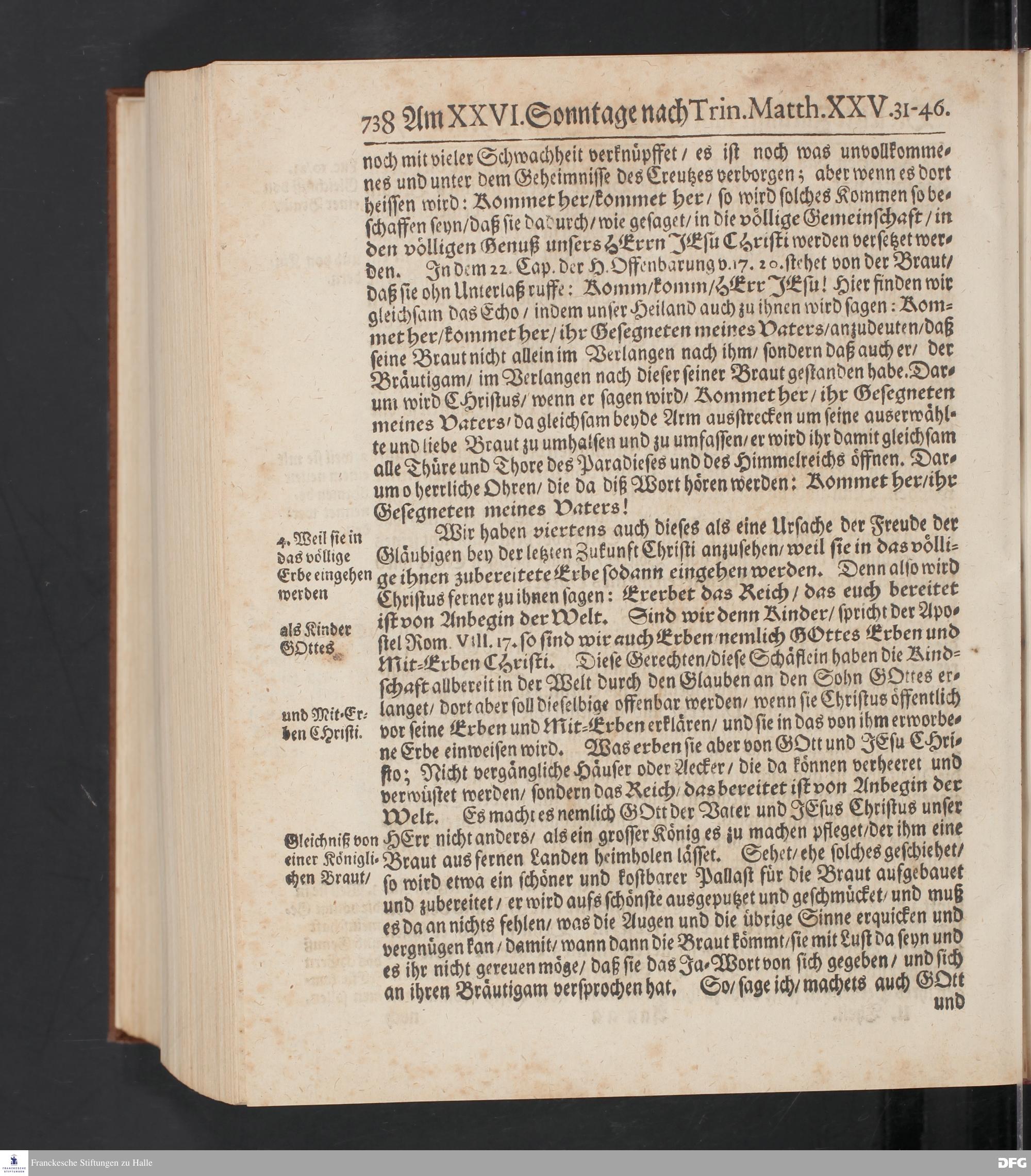 August Hermann Franckens S.Theol.Prof.und Past. Sonn= Fest= und Apostel=Tags=-Predigten / Darinnen Die zum wahren Christenthum gehörige nöthigste und vornehmste Materien abgehandelt sind; Nunmehro von neuen wieder durchgesehen / und mit einigen Predigten vermehret / Nebst den darzu nützlichen Registern. Die vierte EDITION. HALLE / gedruckt und verlegt im Wäysen=Hause / MDCCXV. Mit Königl.Preuß.und Churfl.Brandenb.Privil.