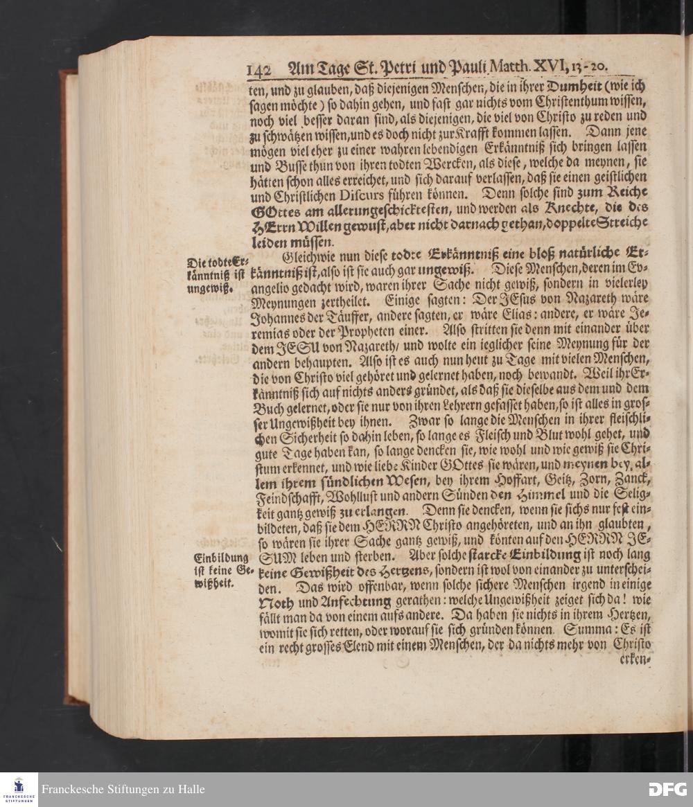 August Hermann Franckens S.Theol.Prof.und Past. Sonn= Fest= und Apostel=Tags=-Predigten / Darinnen Die zum wahren Christenthum gehörige nöthigste und vornehmste Materien abgehandelt sind; Nunmehro von neuen wieder durchgesehen / und mit einigen Predigten vermehret / Nebst den darzu nützlichen Registern. Die vierte EDITION. HALLE / gedruckt und verlegt im Wäysen=Hause / MDCCXV. Mit Königl.Preuß.und Churfl.Brandenb.Privil.