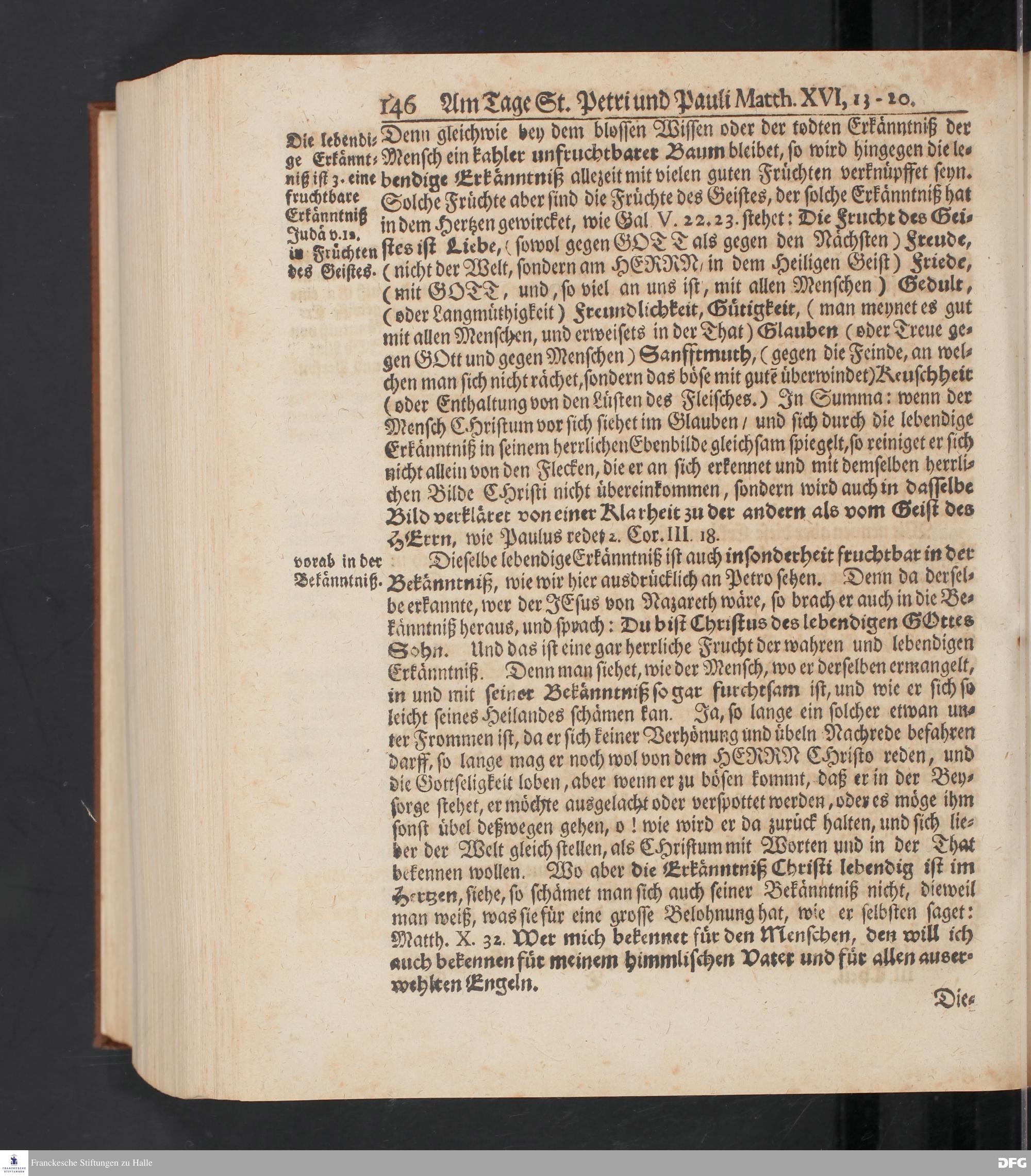 August Hermann Franckens S.Theol.Prof.und Past. Sonn= Fest= und Apostel=Tags=-Predigten / Darinnen Die zum wahren Christenthum gehörige nöthigste und vornehmste Materien abgehandelt sind; Nunmehro von neuen wieder durchgesehen / und mit einigen Predigten vermehret / Nebst den darzu nützlichen Registern. Die vierte EDITION. HALLE / gedruckt und verlegt im Wäysen=Hause / MDCCXV. Mit Königl.Preuß.und Churfl.Brandenb.Privil.