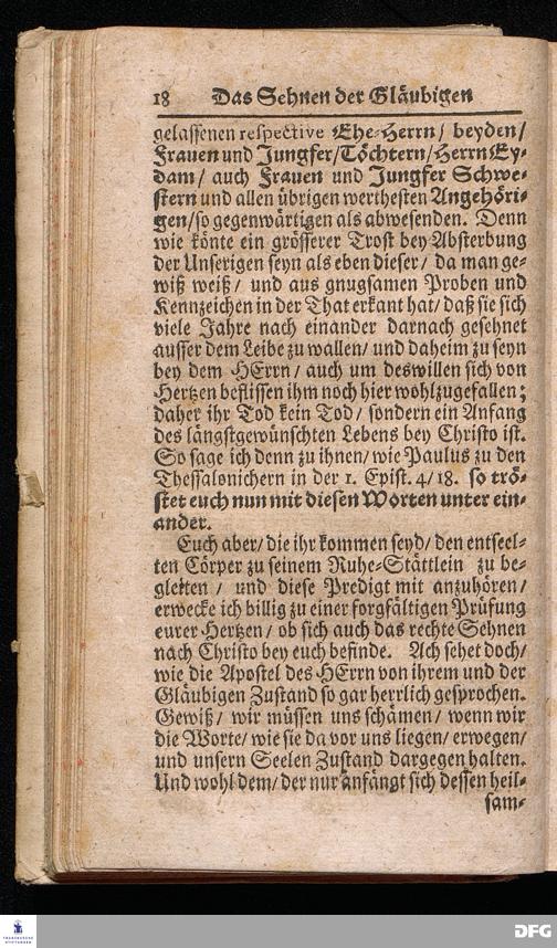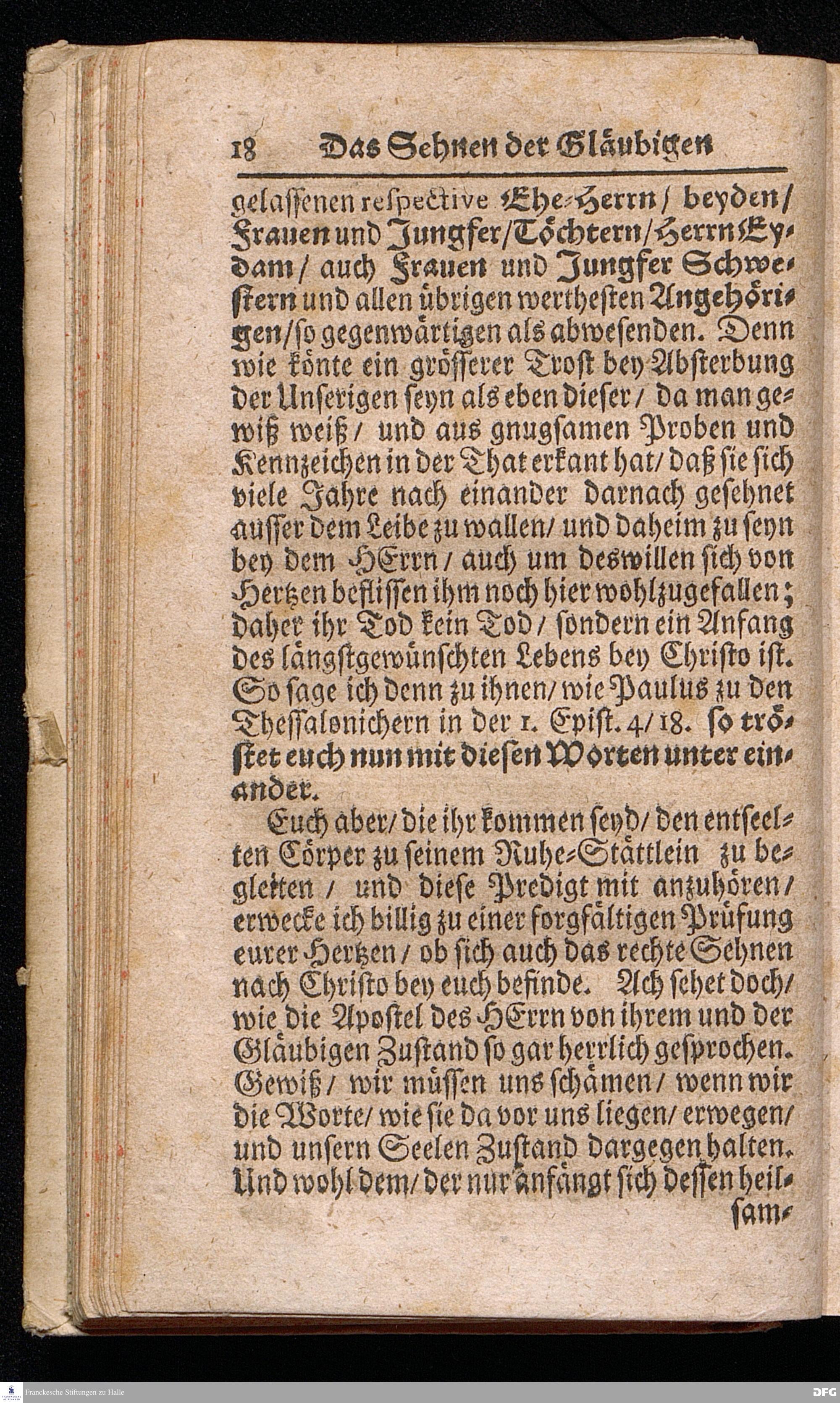 Das Sehnen der Gläubigen nach CHristo, Bey Christlicher Beerdigung Der weyland Wohl=Edlen und GOTT=geliebten Frauen / FRAUEN Anna Catharina Wieglebin, gebohrnen Starckin, (Tit.) HERRN M.Joh.Hieronymi Wieglebs, Treu=verdienten Pastoris in Glaucha Lieb=gewesenen Ehe=Genoßin, In einer aus 2.Corinth. V.8.9. Ihr den 23.Febr.1719. gehaltenen Leichen=Predigt vorgestellet von August Hermann Francken / S.Theol.Prof.Publ.Ordin.Past.Ulric. und des Gymnasii Scholarcha.