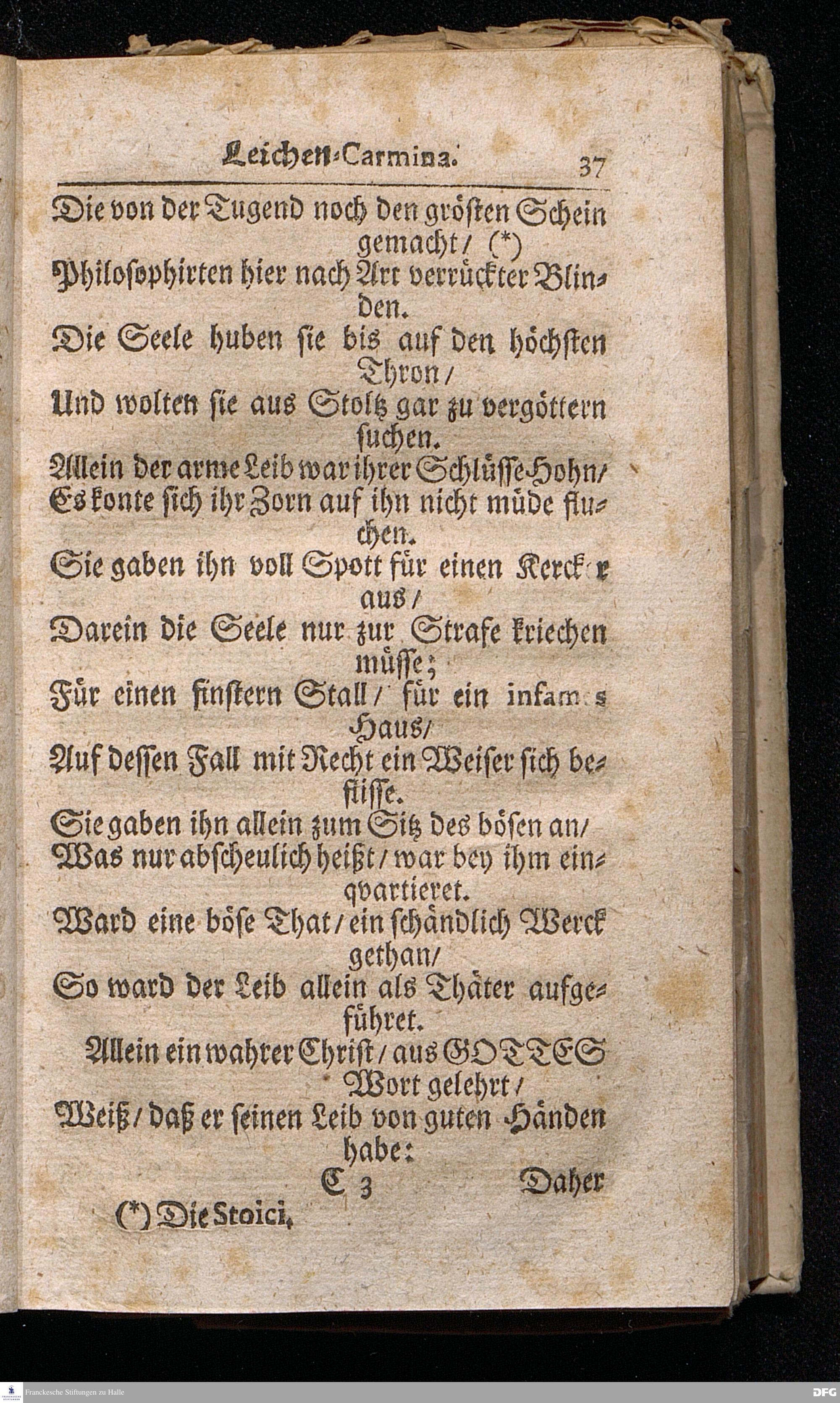 Das Sehnen der Gläubigen nach CHristo, Bey Christlicher Beerdigung Der weyland Wohl=Edlen und GOTT=geliebten Frauen / FRAUEN Anna Catharina Wieglebin, gebohrnen Starckin, (Tit.) HERRN M.Joh.Hieronymi Wieglebs, Treu=verdienten Pastoris in Glaucha Lieb=gewesenen Ehe=Genoßin, In einer aus 2.Corinth. V.8.9. Ihr den 23.Febr.1719. gehaltenen Leichen=Predigt vorgestellet von August Hermann Francken / S.Theol.Prof.Publ.Ordin.Past.Ulric. und des Gymnasii Scholarcha.