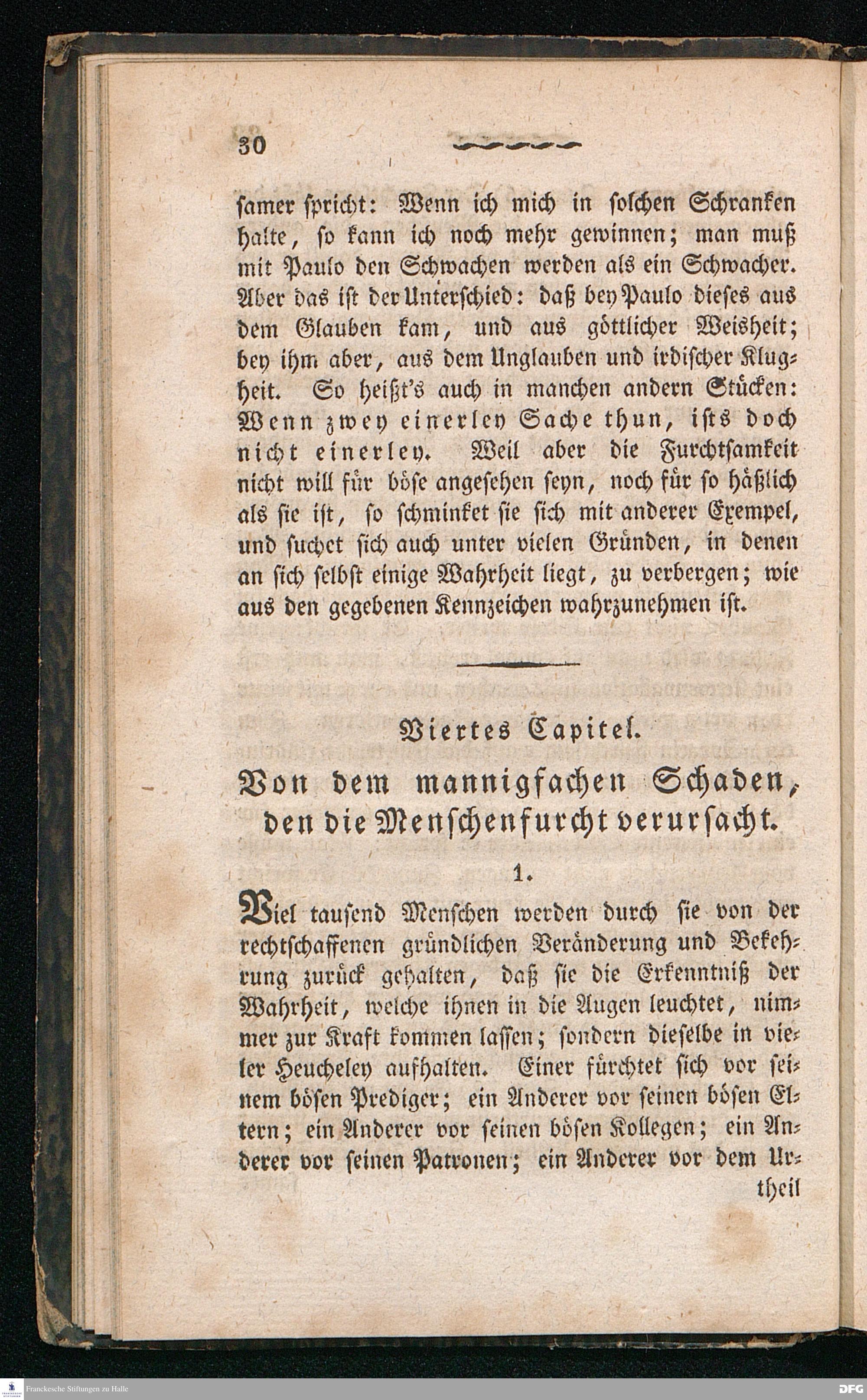 Nicodemus. Ein Tractat über die Menschenfurcht, zur Pflanzung der wahren Furcht Gottes allen Christen besonders aber den Kirchen= und Schul=Lehrern gewidmet von August Hermann Franke[!], weiland Professor der Theologie und Oberprediger zu St.Ulrich, Stifter und Director des Königl.Pädagogiums und Waisenhauses und sämmtlicher damit verbundenen Institute. Sechste Auflage. Halle, in der Buchhandlung des Waisenhauses. 1826.