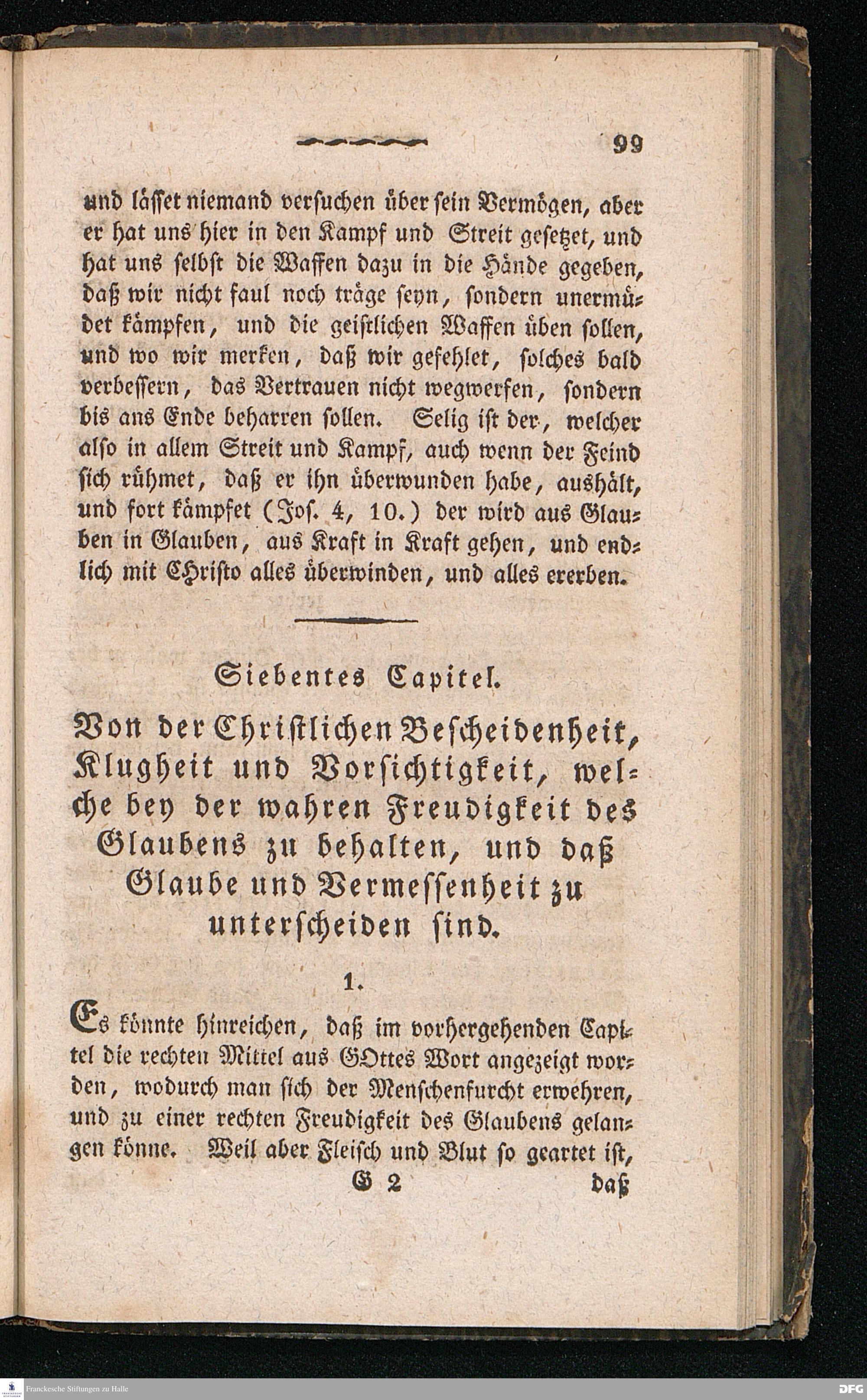 Nicodemus. Ein Tractat über die Menschenfurcht, zur Pflanzung der wahren Furcht Gottes allen Christen besonders aber den Kirchen= und Schul=Lehrern gewidmet von August Hermann Franke[!], weiland Professor der Theologie und Oberprediger zu St.Ulrich, Stifter und Director des Königl.Pädagogiums und Waisenhauses und sämmtlicher damit verbundenen Institute. Sechste Auflage. Halle, in der Buchhandlung des Waisenhauses. 1826.