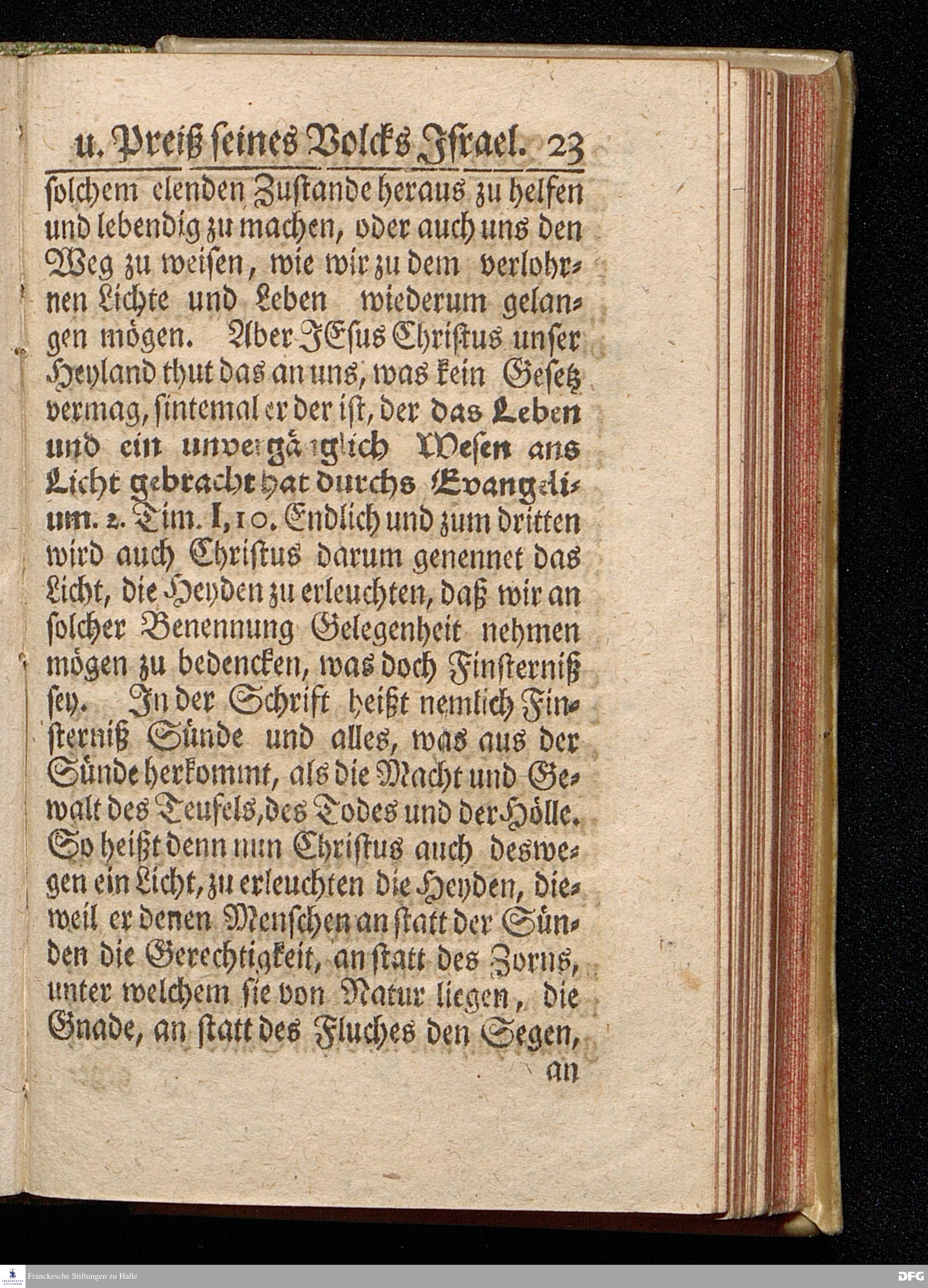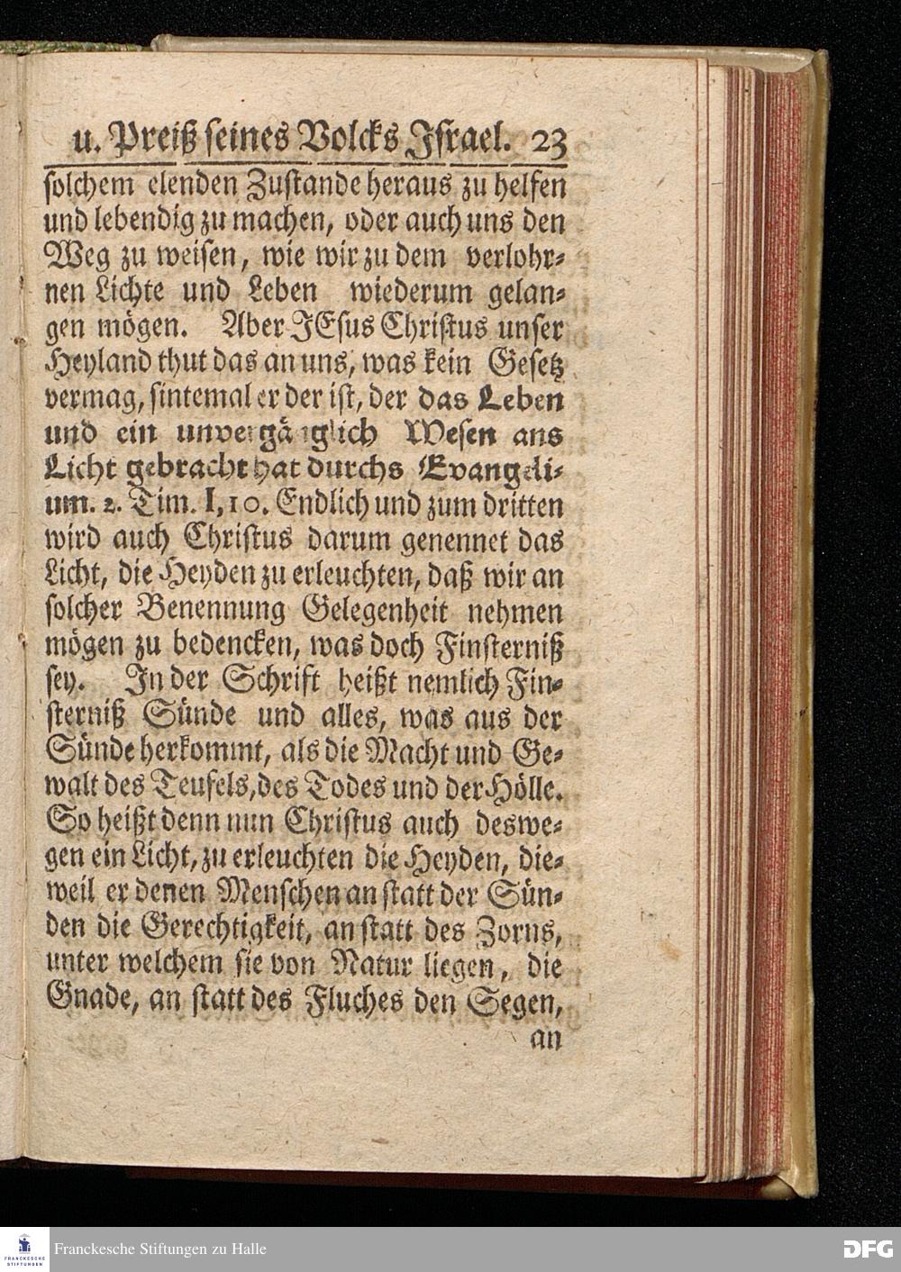 JEsus CHristus als das Licht der Heyden / Und der Preiß Israels / Nach Anleitung des Evangelischen Textes Luc.II, 22--32. Am Tage der Reinigung Mariä An. 1714. Auf Veranlassung einer damals angestelleten Jüden=Tauffe, In der St.Georgen=Kirche zu Glaucha an Halle vorgestellet, von August Hermann Francken / S.Theol.Prof.Ord.& Past. Der bey obgedachter Tauffe gehaltene Sermon und das Examen mit dem Täufling ist zugleich mit hieran gedrucket. HALLE, In Verlegung des Waysenhauses. 1714.
