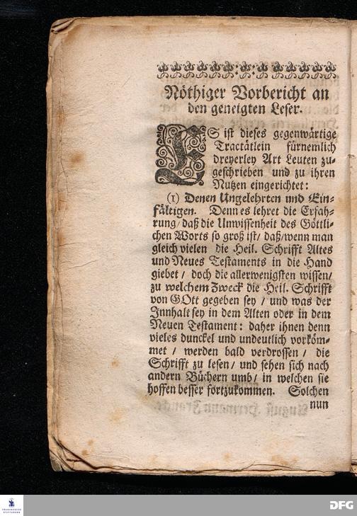August Hermann Franckens / S.Theol.Pr.Ord.& Past.Glauch. Einleitung Zur Lesung der Heil. Schrifft / Insonderheit Des Neuen Testaments / I. Für Ungelehrte und Einfältige / II. Für Studiosos Theologiæ, III. Für Catechesirende: Darinnen der Zweck und Innhalt der gantzen H. Schrifft / Fürnemlich der Bücher des Neuen Testaments / und dessen Gebrauch / zur Gründung in der Christlichen Lehre und Gottseeligkeit / deutlich gezeiget wird. Die vierte Edition: Dabey auch ein kurtzer Auszug in Frag= u. Antwort / für diejenigen / welche die Jugend und Einfältigen zur Lesung der Schrifft anführen sollen. HALLE / gedruckt und verlegt im Wäysenhause / 1705.