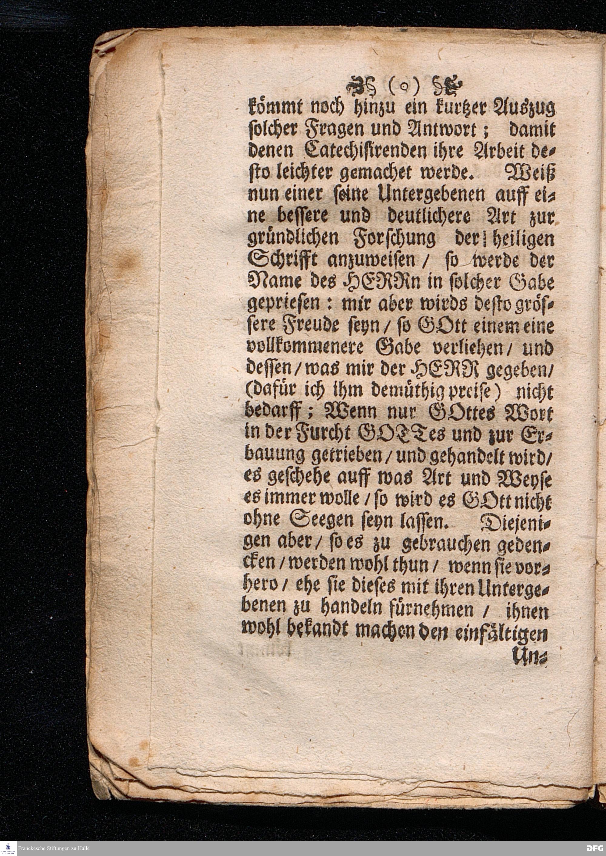 August Hermann Franckens / S.Theol.Pr.Ord.& Past.Glauch. Einleitung Zur Lesung der Heil. Schrifft / Insonderheit Des Neuen Testaments / I. Für Ungelehrte und Einfältige / II. Für Studiosos Theologiæ, III. Für Catechesirende: Darinnen der Zweck und Innhalt der gantzen H. Schrifft / Fürnemlich der Bücher des Neuen Testaments / und dessen Gebrauch / zur Gründung in der Christlichen Lehre und Gottseeligkeit / deutlich gezeiget wird. Die vierte Edition: Dabey auch ein kurtzer Auszug in Frag= u. Antwort / für diejenigen / welche die Jugend und Einfältigen zur Lesung der Schrifft anführen sollen. HALLE / gedruckt und verlegt im Wäysenhause / 1705.