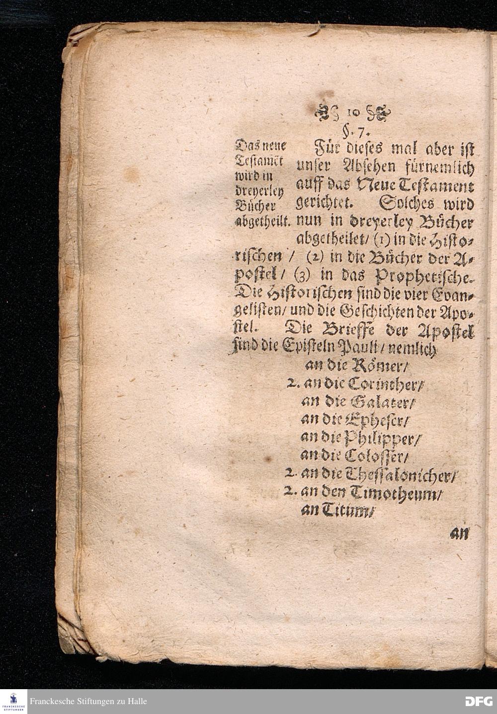 August Hermann Franckens / S.Theol.Pr.Ord.& Past.Glauch. Einleitung Zur Lesung der Heil. Schrifft / Insonderheit Des Neuen Testaments / I. Für Ungelehrte und Einfältige / II. Für Studiosos Theologiæ, III. Für Catechesirende: Darinnen der Zweck und Innhalt der gantzen H. Schrifft / Fürnemlich der Bücher des Neuen Testaments / und dessen Gebrauch / zur Gründung in der Christlichen Lehre und Gottseeligkeit / deutlich gezeiget wird. Die vierte Edition: Dabey auch ein kurtzer Auszug in Frag= u. Antwort / für diejenigen / welche die Jugend und Einfältigen zur Lesung der Schrifft anführen sollen. HALLE / gedruckt und verlegt im Wäysenhause / 1705.
