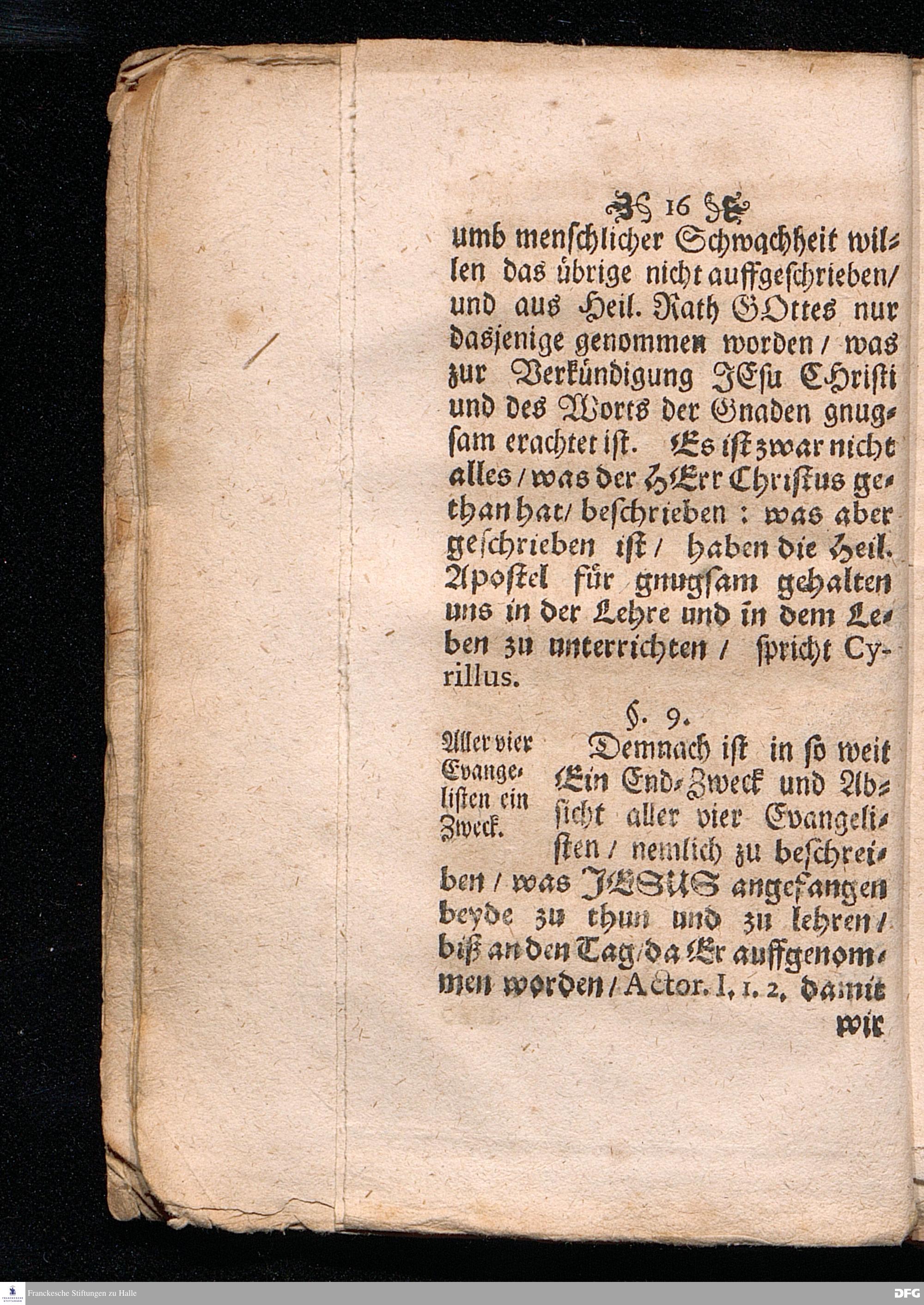 August Hermann Franckens / S.Theol.Pr.Ord.& Past.Glauch. Einleitung Zur Lesung der Heil. Schrifft / Insonderheit Des Neuen Testaments / I. Für Ungelehrte und Einfältige / II. Für Studiosos Theologiæ, III. Für Catechesirende: Darinnen der Zweck und Innhalt der gantzen H. Schrifft / Fürnemlich der Bücher des Neuen Testaments / und dessen Gebrauch / zur Gründung in der Christlichen Lehre und Gottseeligkeit / deutlich gezeiget wird. Die vierte Edition: Dabey auch ein kurtzer Auszug in Frag= u. Antwort / für diejenigen / welche die Jugend und Einfältigen zur Lesung der Schrifft anführen sollen. HALLE / gedruckt und verlegt im Wäysenhause / 1705.