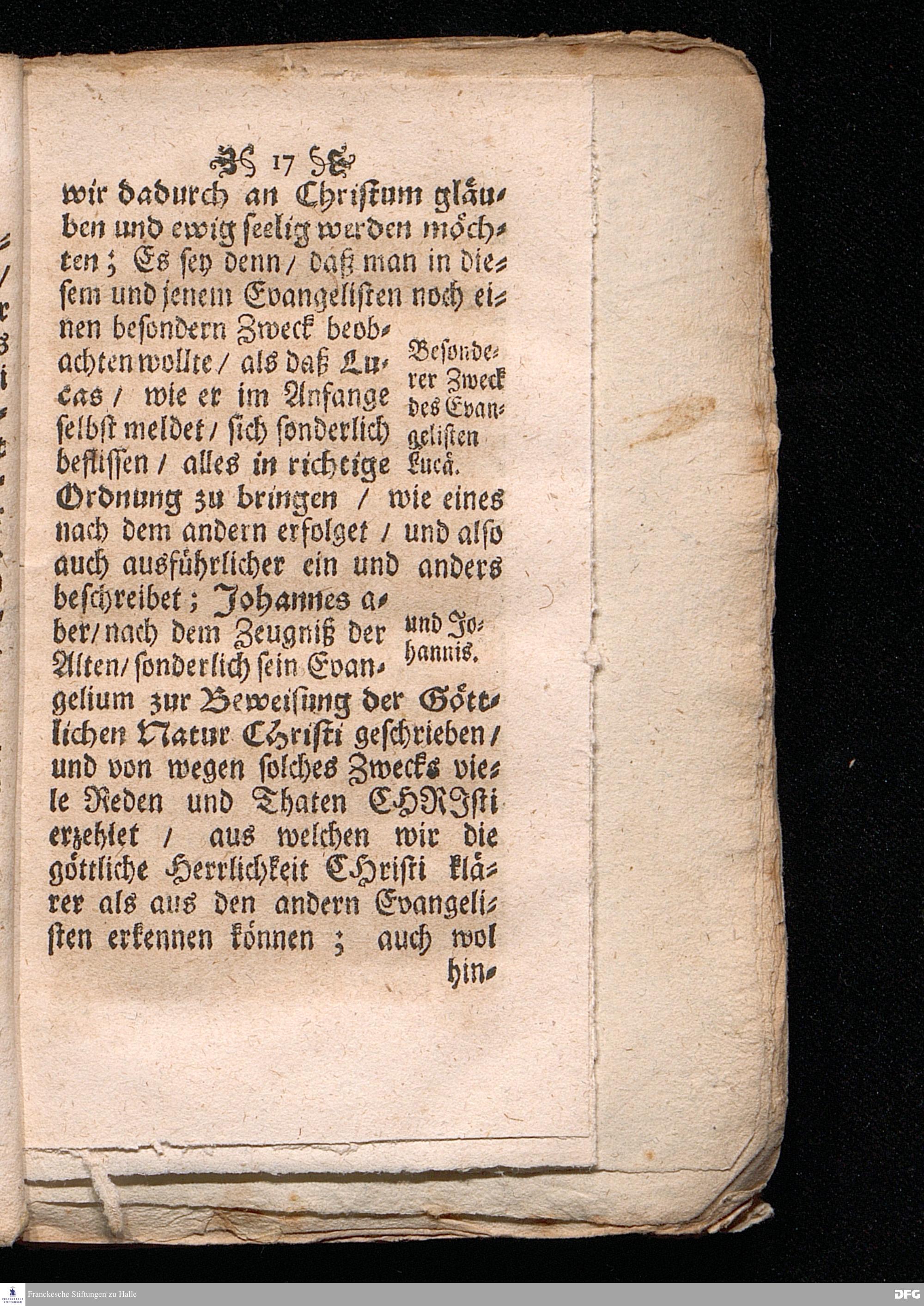 August Hermann Franckens / S.Theol.Pr.Ord.& Past.Glauch. Einleitung Zur Lesung der Heil. Schrifft / Insonderheit Des Neuen Testaments / I. Für Ungelehrte und Einfältige / II. Für Studiosos Theologiæ, III. Für Catechesirende: Darinnen der Zweck und Innhalt der gantzen H. Schrifft / Fürnemlich der Bücher des Neuen Testaments / und dessen Gebrauch / zur Gründung in der Christlichen Lehre und Gottseeligkeit / deutlich gezeiget wird. Die vierte Edition: Dabey auch ein kurtzer Auszug in Frag= u. Antwort / für diejenigen / welche die Jugend und Einfältigen zur Lesung der Schrifft anführen sollen. HALLE / gedruckt und verlegt im Wäysenhause / 1705.