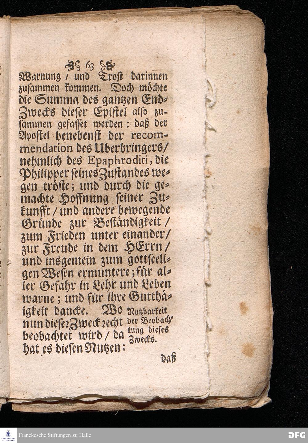 August Hermann Franckens / S.Theol.Pr.Ord.& Past.Glauch. Einleitung Zur Lesung der Heil. Schrifft / Insonderheit Des Neuen Testaments / I. Für Ungelehrte und Einfältige / II. Für Studiosos Theologiæ, III. Für Catechesirende: Darinnen der Zweck und Innhalt der gantzen H. Schrifft / Fürnemlich der Bücher des Neuen Testaments / und dessen Gebrauch / zur Gründung in der Christlichen Lehre und Gottseeligkeit / deutlich gezeiget wird. Die vierte Edition: Dabey auch ein kurtzer Auszug in Frag= u. Antwort / für diejenigen / welche die Jugend und Einfältigen zur Lesung der Schrifft anführen sollen. HALLE / gedruckt und verlegt im Wäysenhause / 1705.
