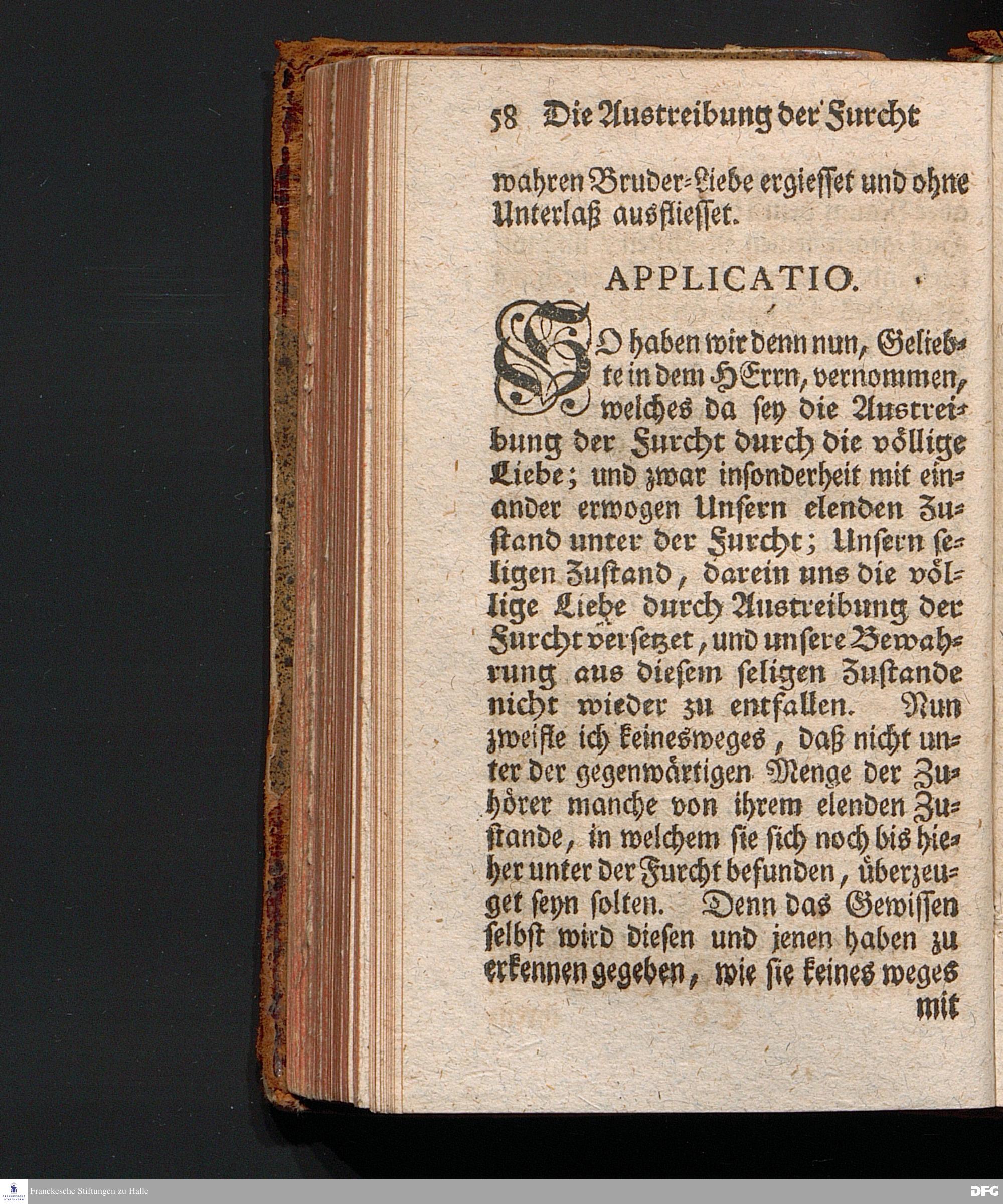 Die Austreibung Der Furcht durch die völlige Liebe, Am I.Sonntag nach Trinitatis 1719. In einer Uber die ordentliche Epistolische Lection aus I Joh.IV, 16-21. In der Universitäts=Kirche zu Leipzig auf geschehenen Antrag gehaltenen Predigt vorgestellet, und auf Begehren zum Druck gegeben, von August Hermann Francken, S.Theol.Prof.& Past.zu St.Ulrich, und des Gymnasii Scholarcha. Dritte Auflage. HALLE, in Verlegung des Wäysenhauses, 1743.