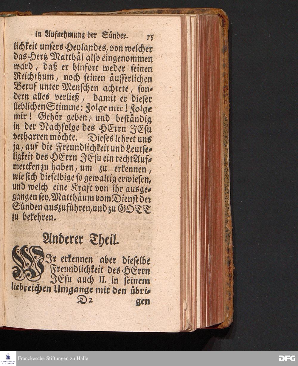 Die Freundlichkeit des HErrn JESU in Aufnehmung der Sünder / Am Tag des Apostels Matthäi 1717. Aus dem ordentlichen Evangelio Matth.IX, 9--13. In der Fürstl.Nassauischen Residentz Idstein bey der damaligen Durchreise in einer auf Verlangen gehaltenen Predigt vorgestellet von August Hermann Francken. [1720]
