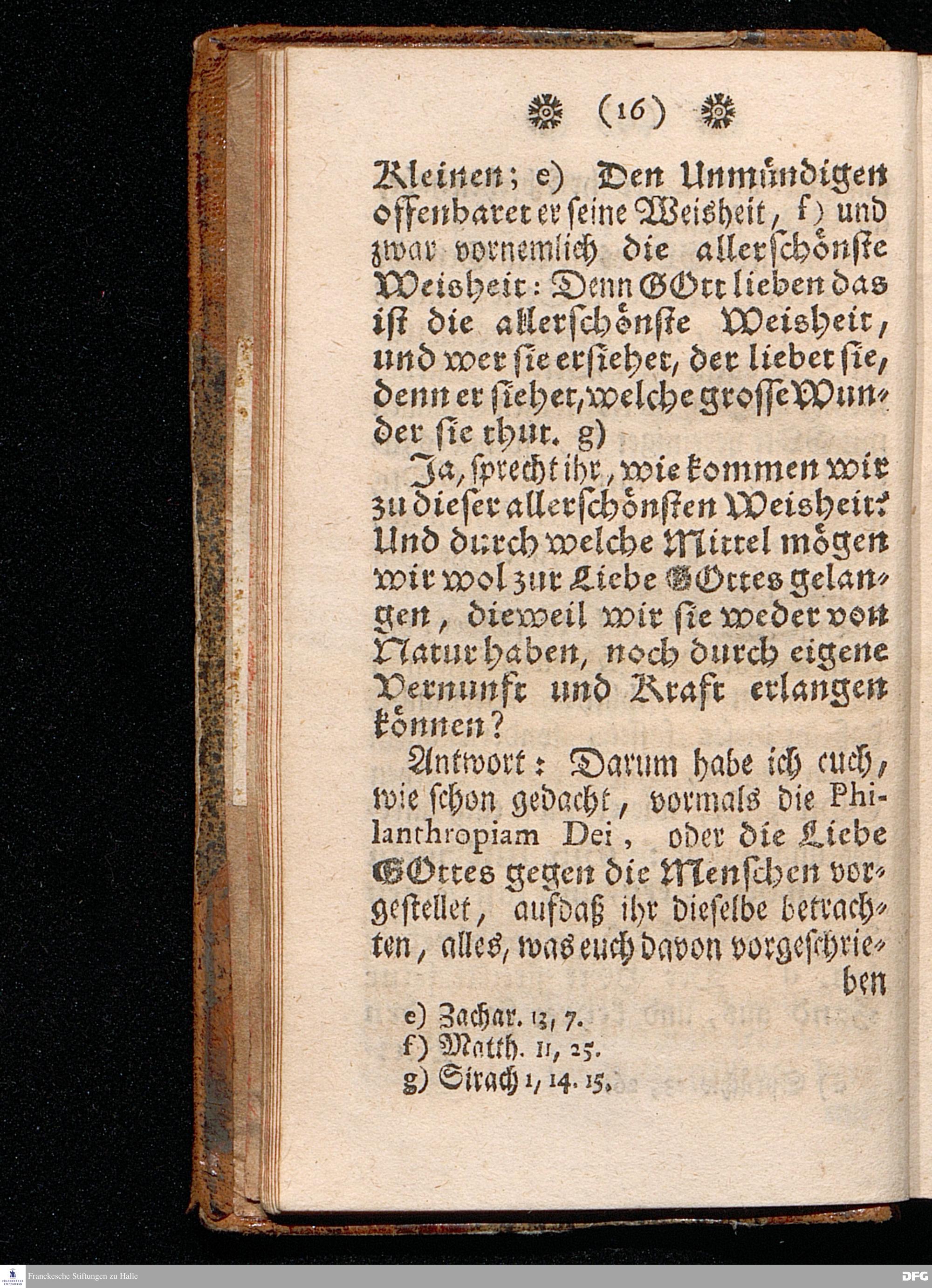 PHILOTHEIA, Oder Die Liebe zu GOTT / Der Jugend in den Schulen des Wäysen=Hauses zu Glaucha an Halle, Als ihre allerhöchste und theureste Pflicht, nach gehaltenem Examine, den 20.Martii 1706. vorgestellet und übergeben von August Hermann Francken / S.Theol.Prof.Ordin.Past.Vlr.& Scholarcha. Die dritte Auflage. HALLE, in Verl.des Wäysenhauses. MDCCXXIII.