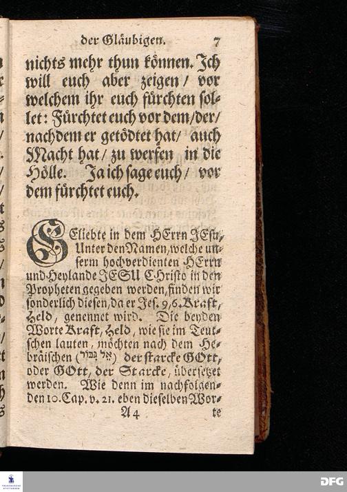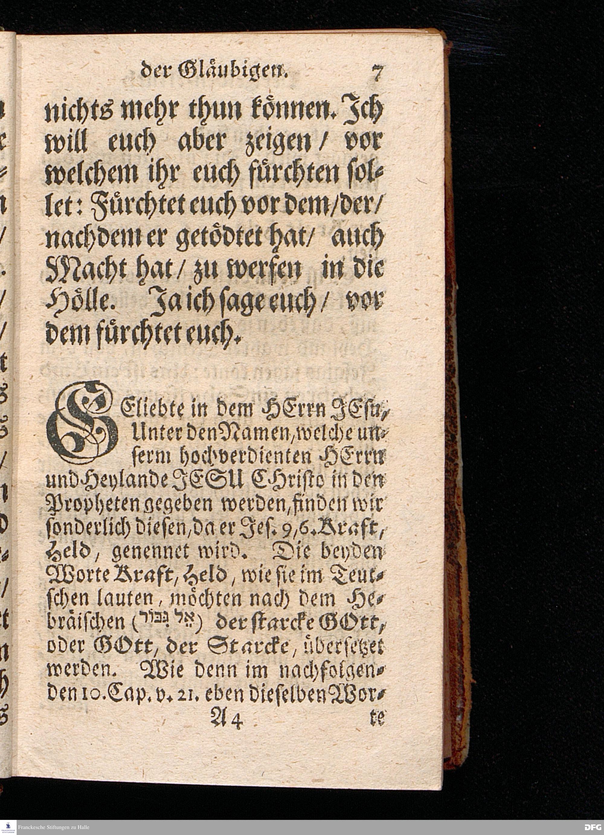 Der Helden=Muth der Gläubigen, In einer vor dem hier versammleten Hochfürstlichen Dessauischen Regiment, am Sonntag Jubilate 1720. gehaltenen Predigt / aus denen dazu vorgeschriebenen Text=Worten, Luc.XII,1--5. in der Schul=Kirche zu Halle vorgestellet von August Hermann Francken / S.Th.Prof.Past.Vlr.& Schol. Andere Auflage. HALLE, gedruckt im Wäysen=Hause. MDCCXXIII.