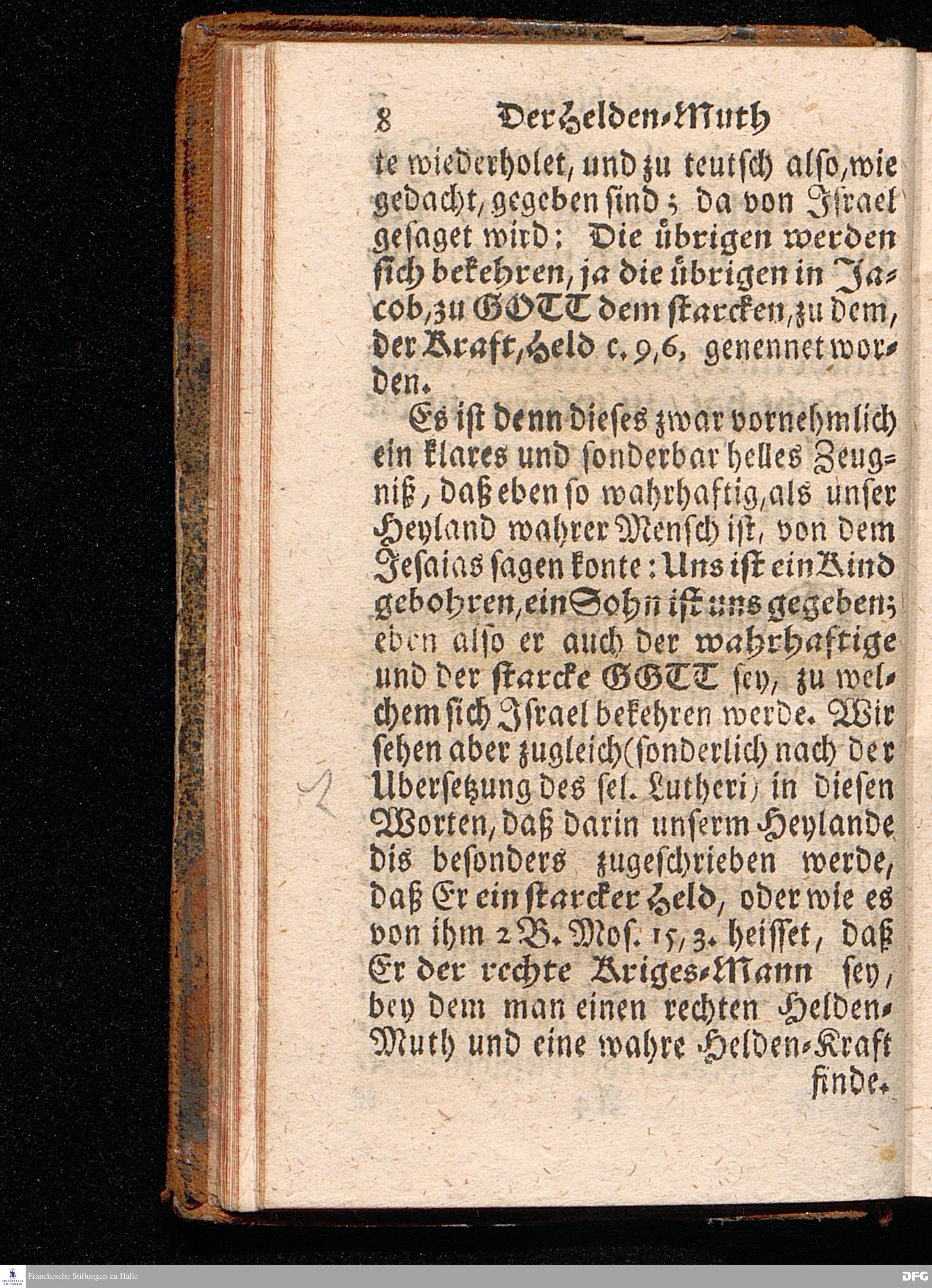 Der Helden=Muth der Gläubigen, In einer vor dem hier versammleten Hochfürstlichen Dessauischen Regiment, am Sonntag Jubilate 1720. gehaltenen Predigt / aus denen dazu vorgeschriebenen Text=Worten, Luc.XII,1--5. in der Schul=Kirche zu Halle vorgestellet von August Hermann Francken / S.Th.Prof.Past.Vlr.& Schol. Andere Auflage. HALLE, gedruckt im Wäysen=Hause. MDCCXXIII.