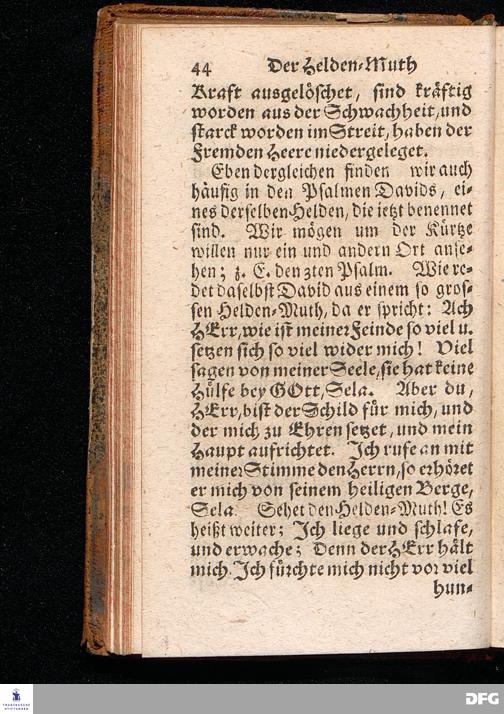 Der Helden=Muth der Gläubigen, In einer vor dem hier versammleten Hochfürstlichen Dessauischen Regiment, am Sonntag Jubilate 1720. gehaltenen Predigt / aus denen dazu vorgeschriebenen Text=Worten, Luc.XII,1--5. in der Schul=Kirche zu Halle vorgestellet von August Hermann Francken / S.Th.Prof.Past.Vlr.& Schol. Andere Auflage. HALLE, gedruckt im Wäysen=Hause. MDCCXXIII.